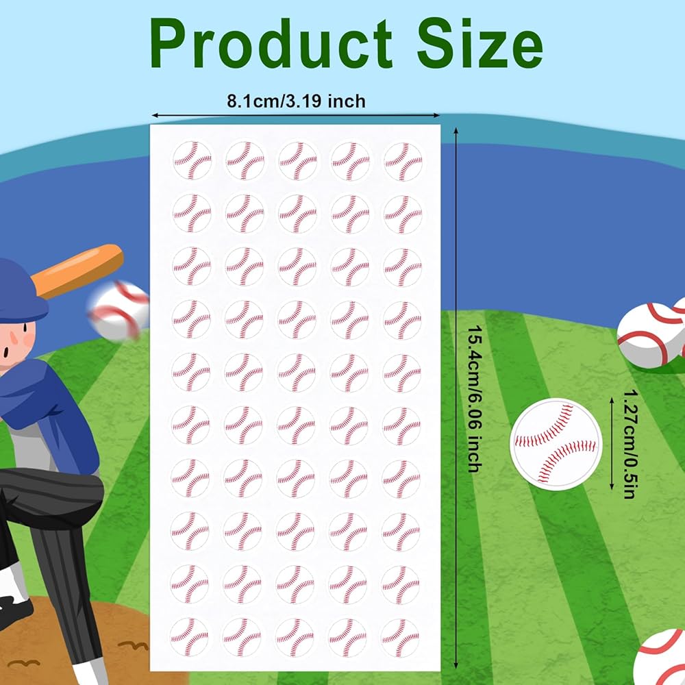 10 Sheets Baseball Stickers, 0.5in Sports Ball Stickers Labels Self-Adhesive Sports Stickers Small Waterproof Envelope Gift Bag Seal for Baseball Theme Party Decor Supplies Team Gifts