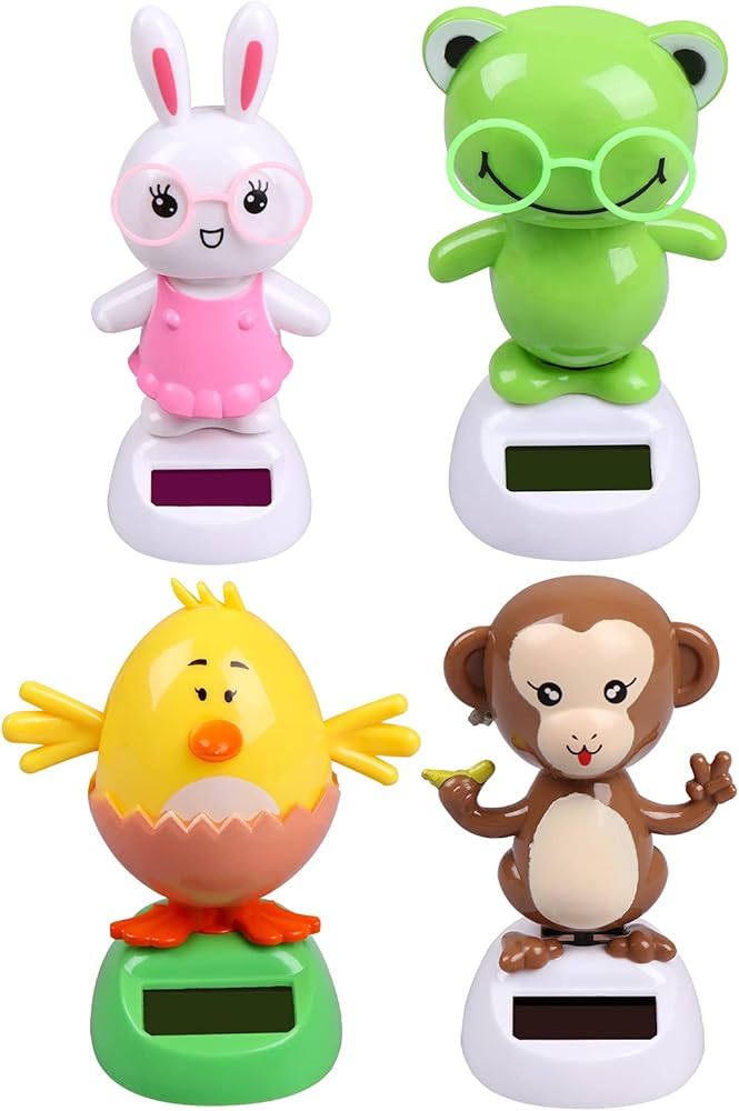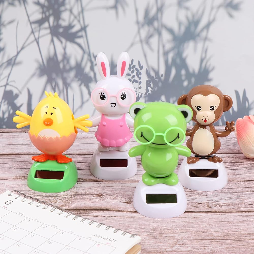 4 Solar Dancing Monkey Toy Solar Powered Dancing Hen in Colorful Pots Swinging Rabbit Animals Flip Flap Animated Bobblehead Dancer Window Frog Sun Catcher Car Dashboard Decor Portable Suncatchers