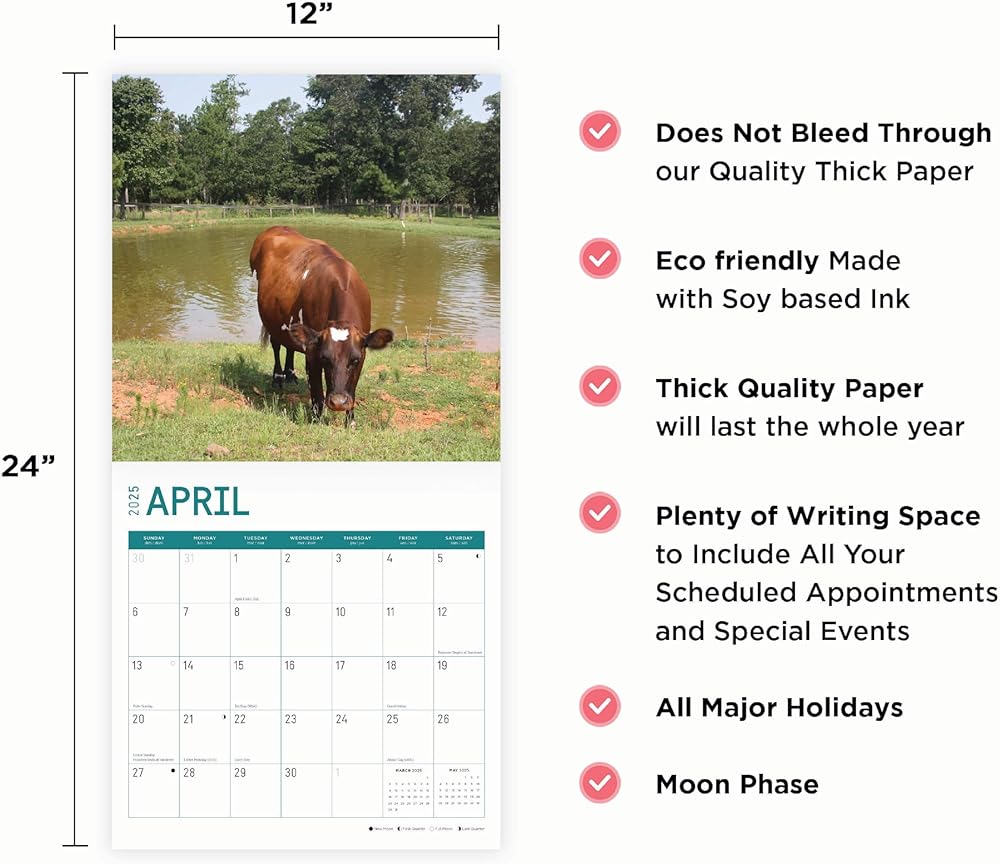 High Quality : Wall Calendar Size Closed: 12 x 12 Inch. Opened: 12 x 24 Inch. Does not bleed through! 13 Full Color Images in our 2025 12 x 12 Wall Calendar. No compromises are made on image quality or content.