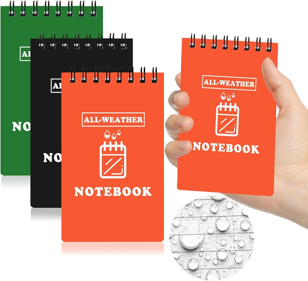 【100% Waterproof Notebook】Our all weather notebook can withstand water, sweat, grease, mud, and even laundry accidents won't turn to mush, and the small spiral notebook will not be damaged by prolonged exposure to water, which is very suitable for use in the wild.