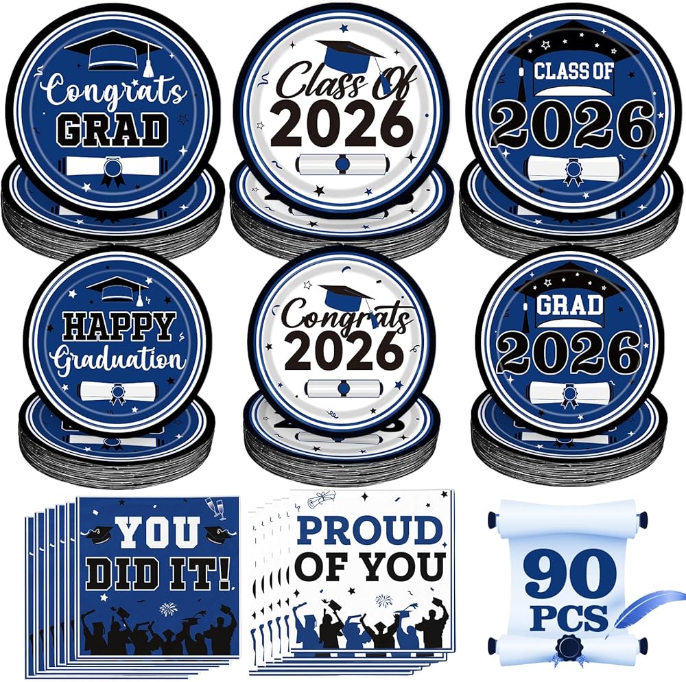 Package Include: You will receive 30*plates (9in) with 3 design, 30*plates (7in) with 3 design, 30*Grad napkins (double side) for graduation decorations class of 2025 .