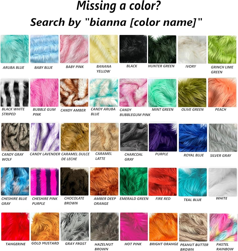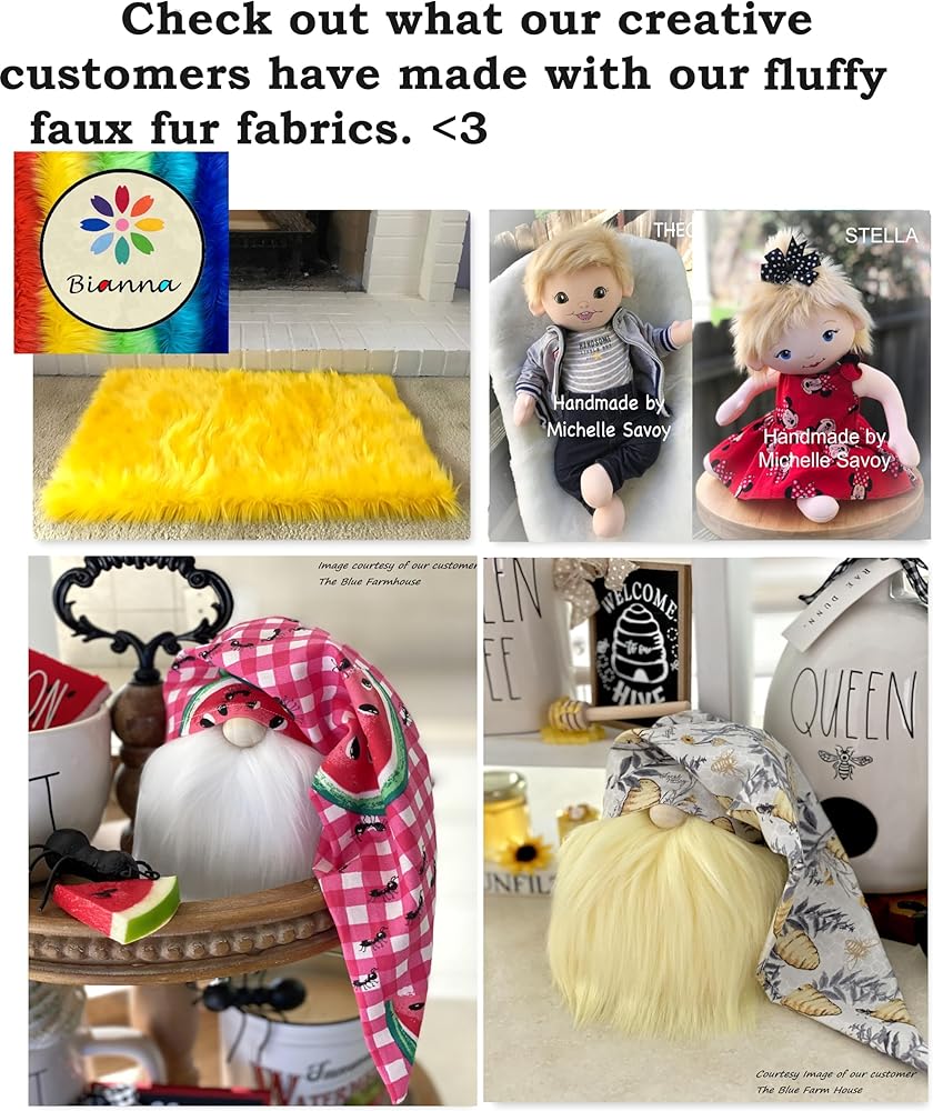 ♥ Fur is thick and super soft. Need other colors or sizes? We have more than 40 beautiful colors and sizes such as: 8x8 inches, 12x12 inches, 20x20 inches, 20x30 inches, 30x36 inches and scrap bags (perfect for samples or small craft projects). Search by "Bianna Creations faux fur fabric" on Amazon search bar or check out our Store Front through the link on top of the title of this product.