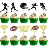 36 PCS American Football Cupcake Toppers Brown Glitter Rugby Ball Cupcake Picks Football Player Cupcake Decorations for Football Theme Baby Shower Kids Birthday Party Cake Decorations Supplies