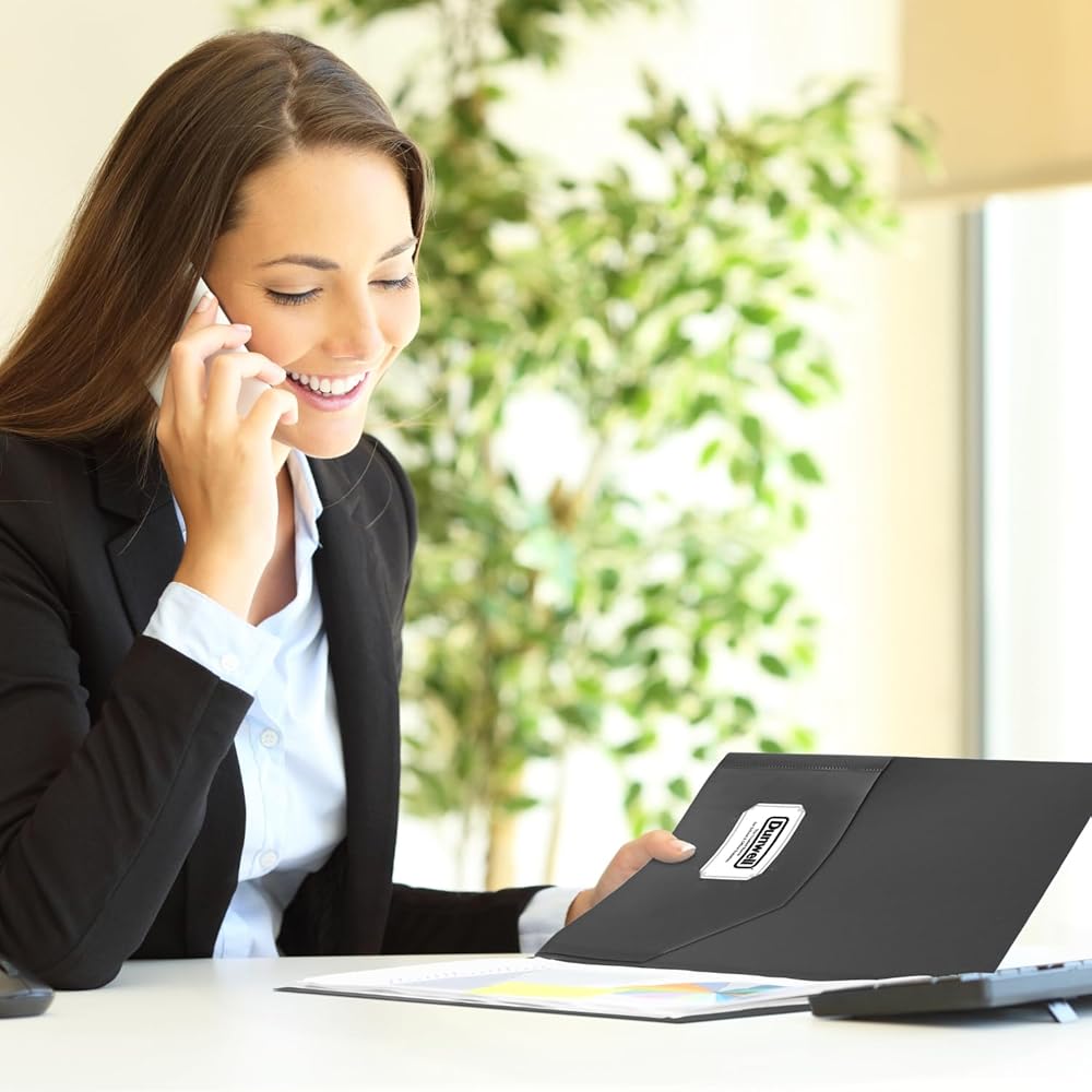 Set of 3 Two pocket plastic folders: Three Plastic black folders, include adhesive labels that peel off cleanly. Use folders with side pockets as office folder, Black plastic folder