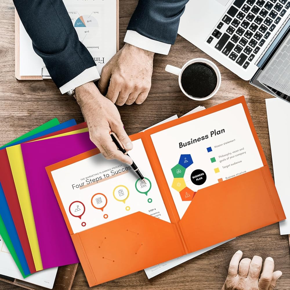 For Office or School: Use Dunwell Two Pocket Plastic Folder for homework, class handouts, presentations, projects, documents. Plastic two pocket folders for professionals, students, home or office.