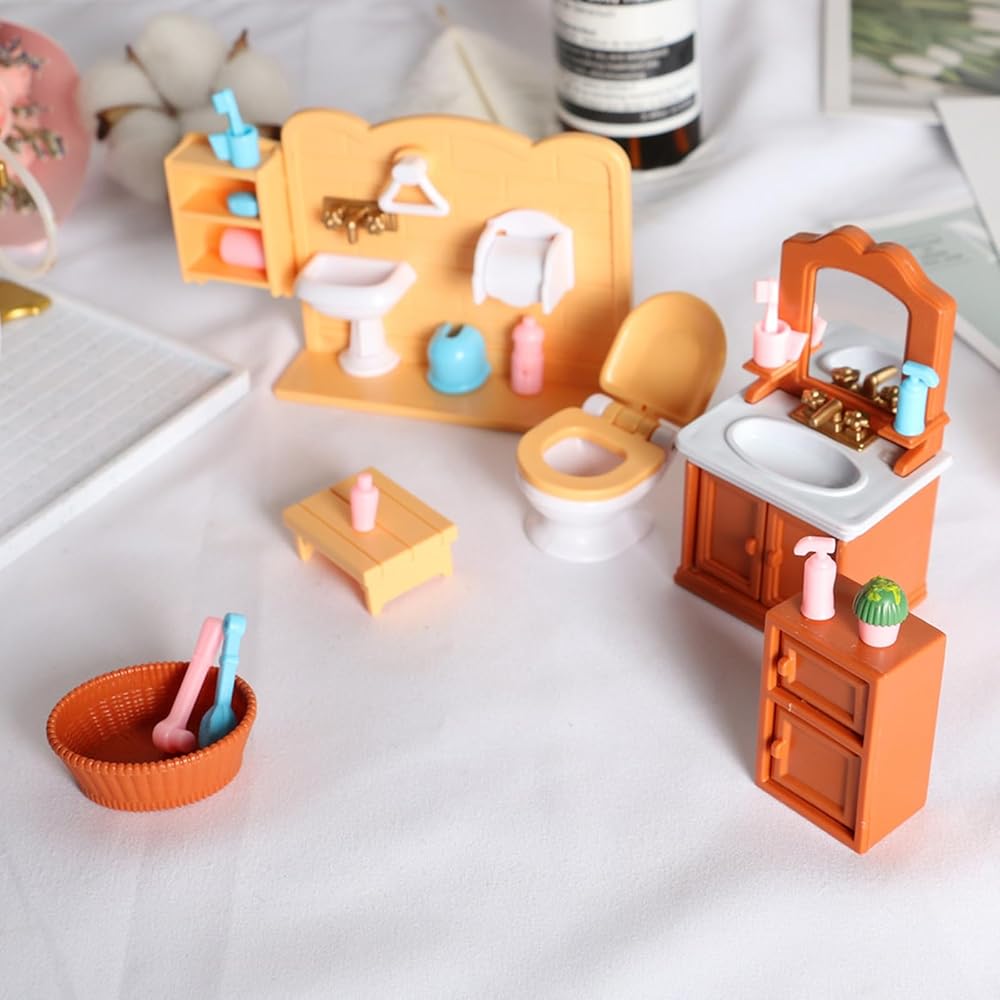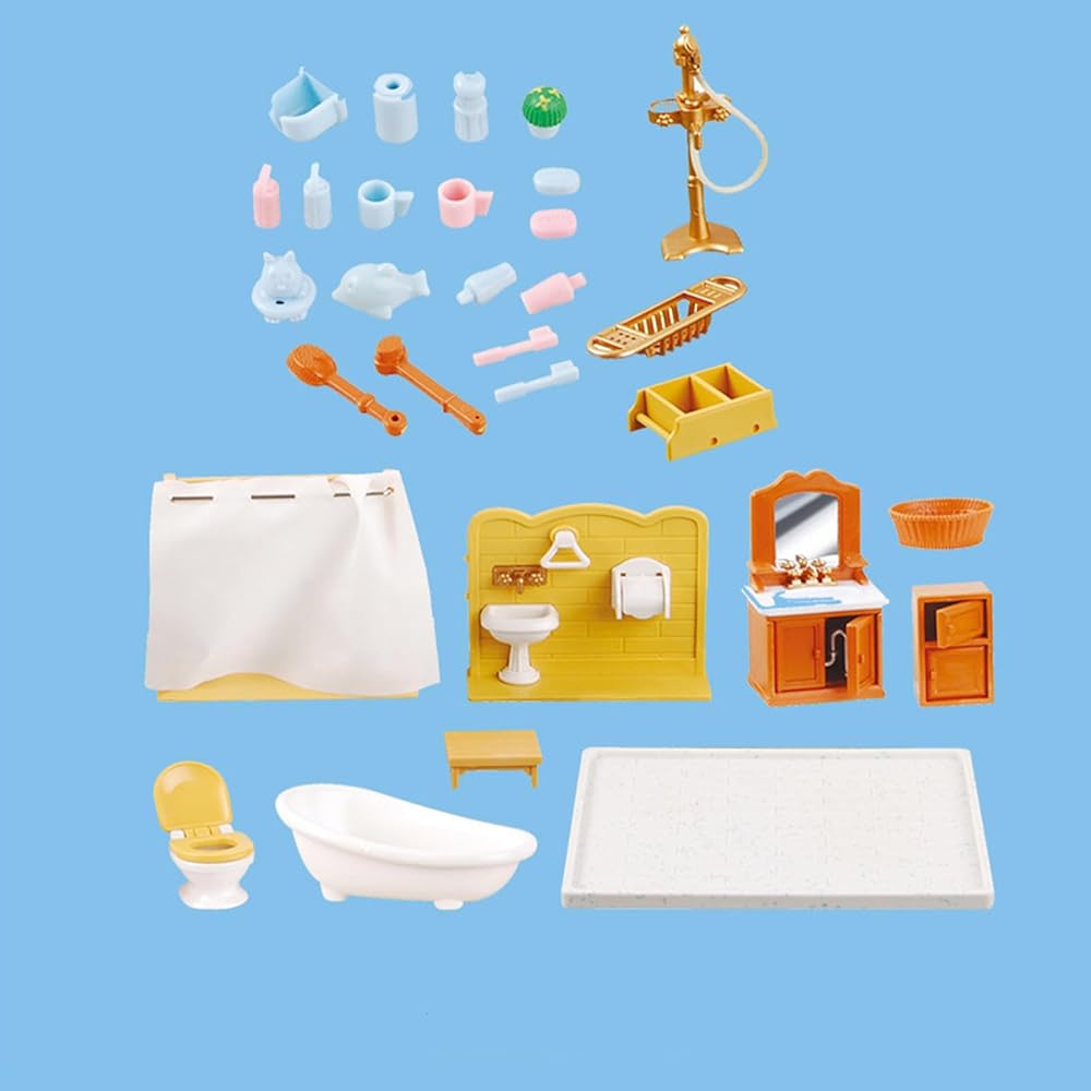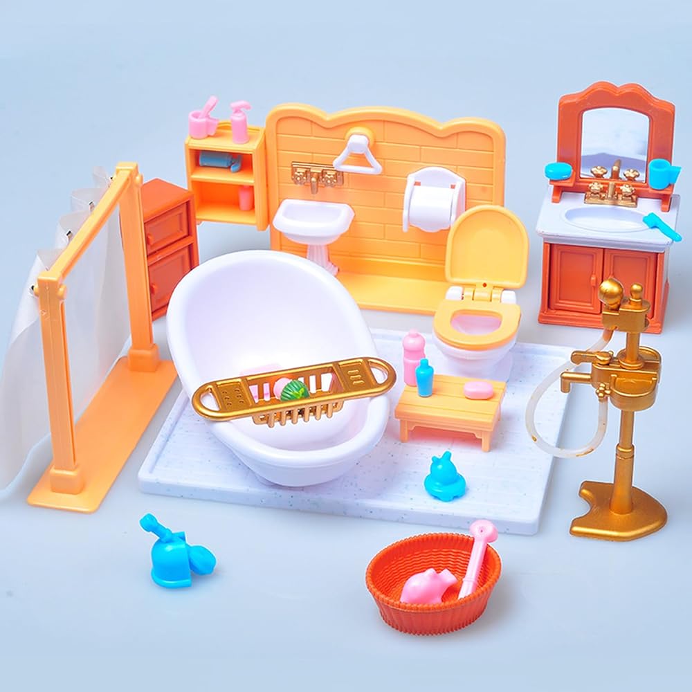 1 x Mini Dollhouse Bathroom Furniture Set,Miniature Bathtub Toilet Sink Model Kit,Dollhouse Shower Room Accessories