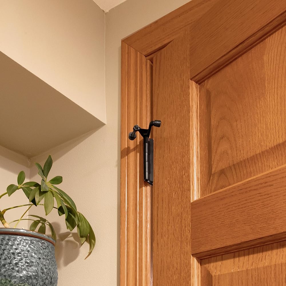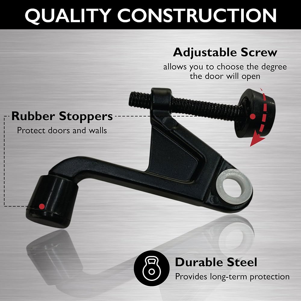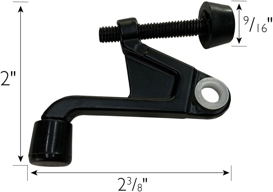 Easy Installation: Measuring 2-1/5-inches, this door stop will accommodate 1/4-inch to 5/16-inch diameter hinge pins and adjusts from 85-degrees to 125-degrees to suit your specific needs, hardware included