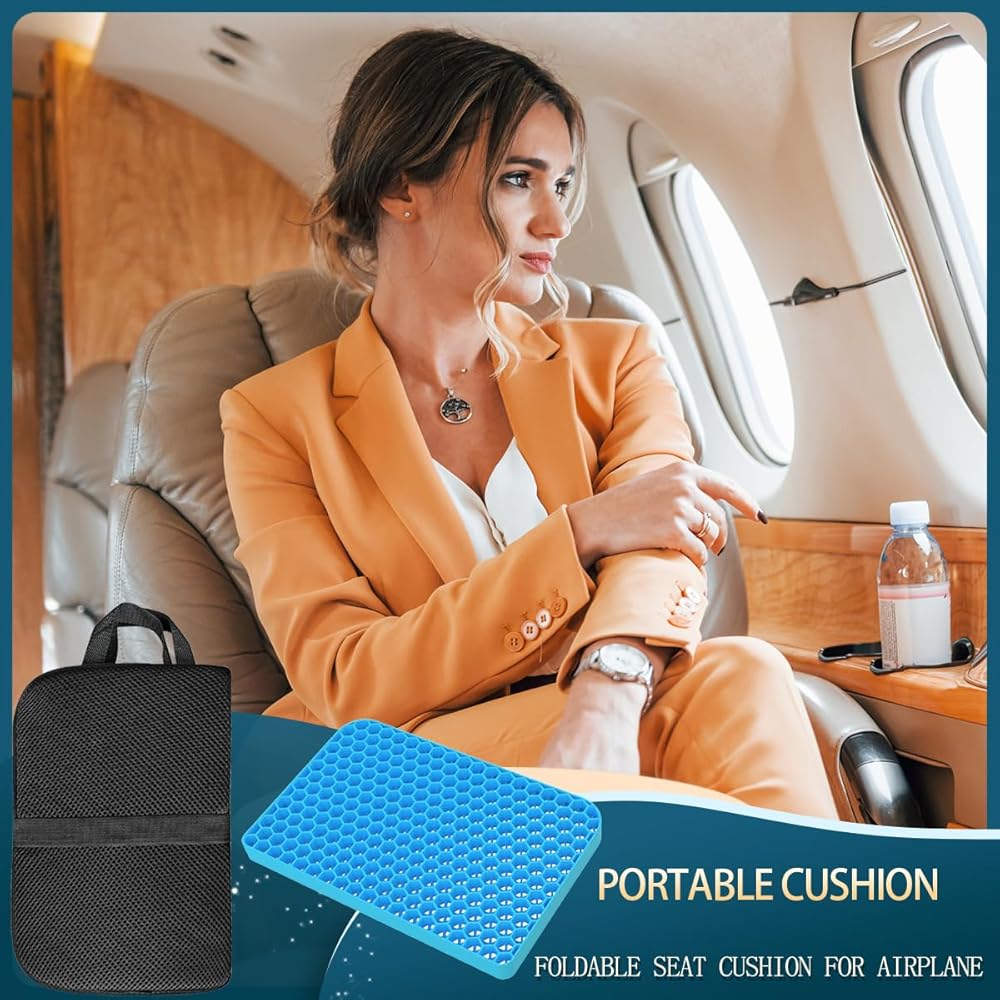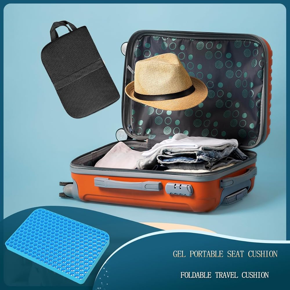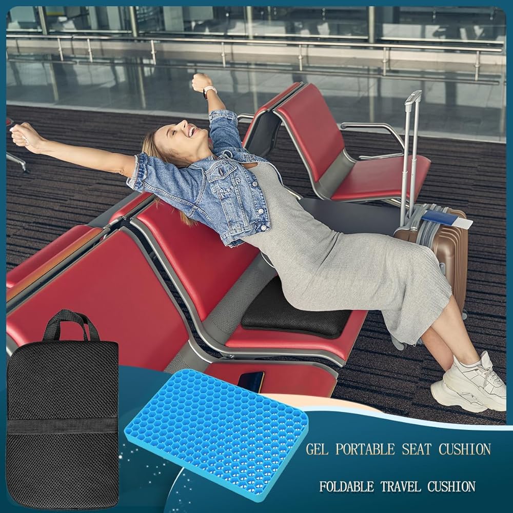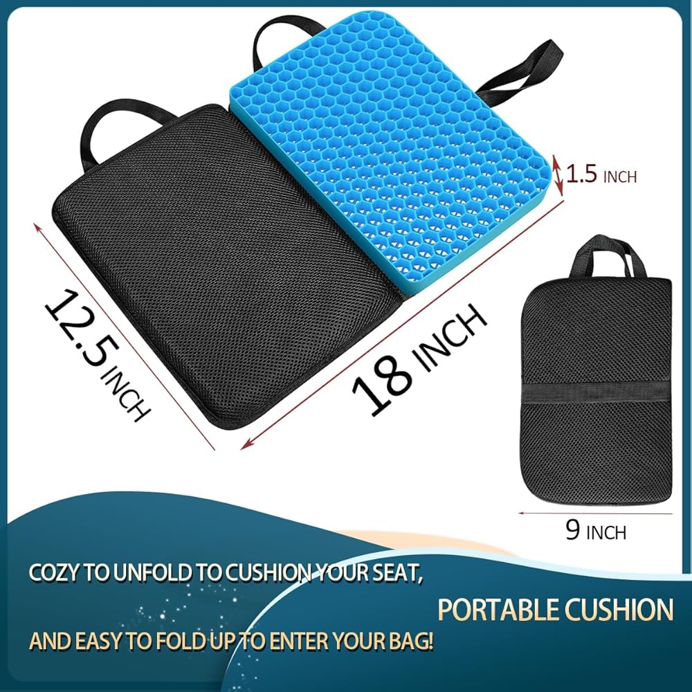 Foldable Gel Seat Cushion for Travel 18 x 12.5 Inches, Portable Travel Seat Cushion, Honeycomb Seat Cushion Gel, Portable Seat Cushion for Travel, Portable Gel Cushion for Pressure Relief (Black)