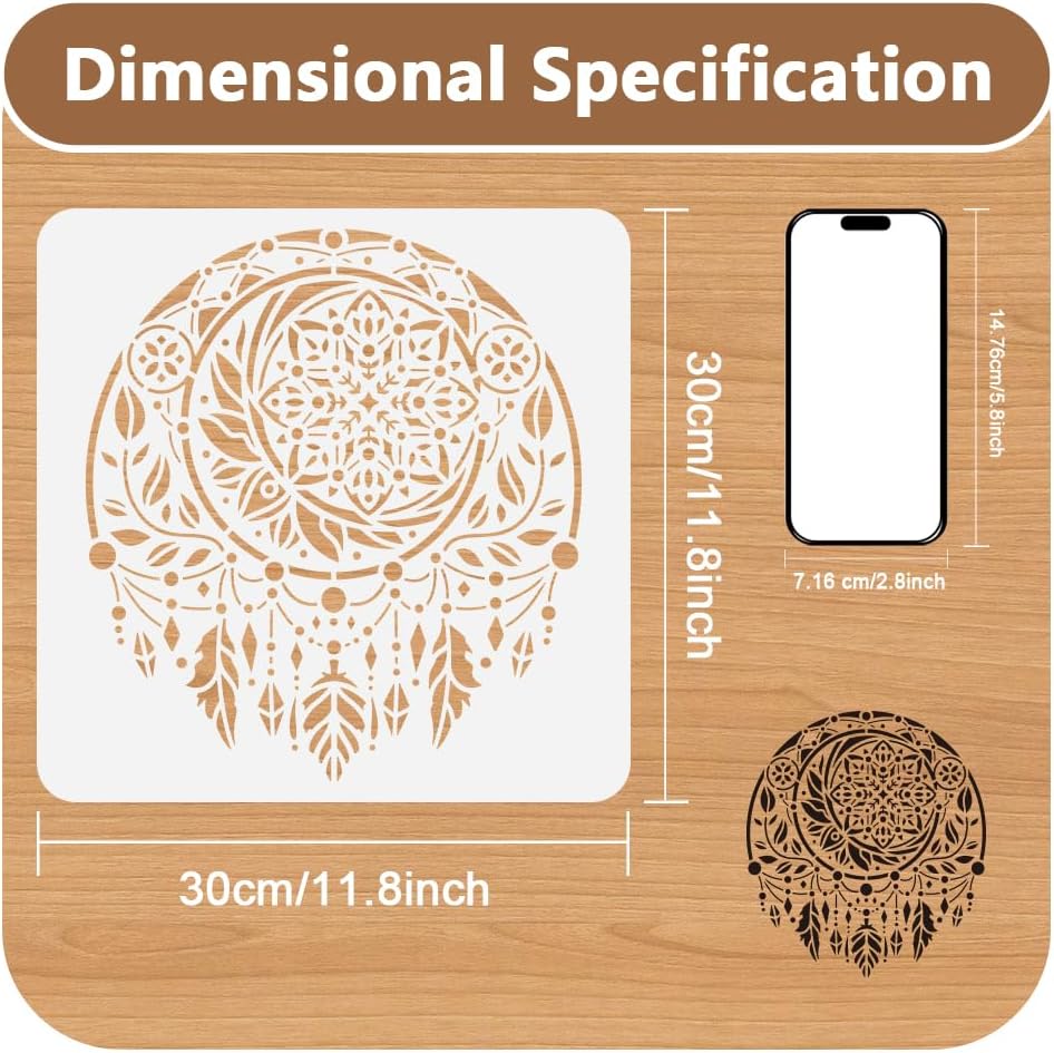 Dreamcatcher Mandala Stencil: You will get 1 piece dream catcher themed painting stencil measuring 11.8x 11.8 inch. Transform ordinary surfaces into works of art with our dreamcatcher stencil