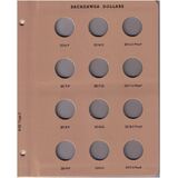Loose Leaf hinged pages, plastic coated and washable. Ports sized to hold average coins securely and covered with acetate slides to protect both sides of the coin. Ports are printed to properly identify coins by date and Mint mark.