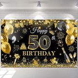 PHOTO BACKDROP OR DECOR: 70.8 '' (Width) x 43.3 '' (Height), the happy 50th birthday backdrop makes a vivid and festive backdrop for photos or a stunning decorative accent for indoor and outdoor parties