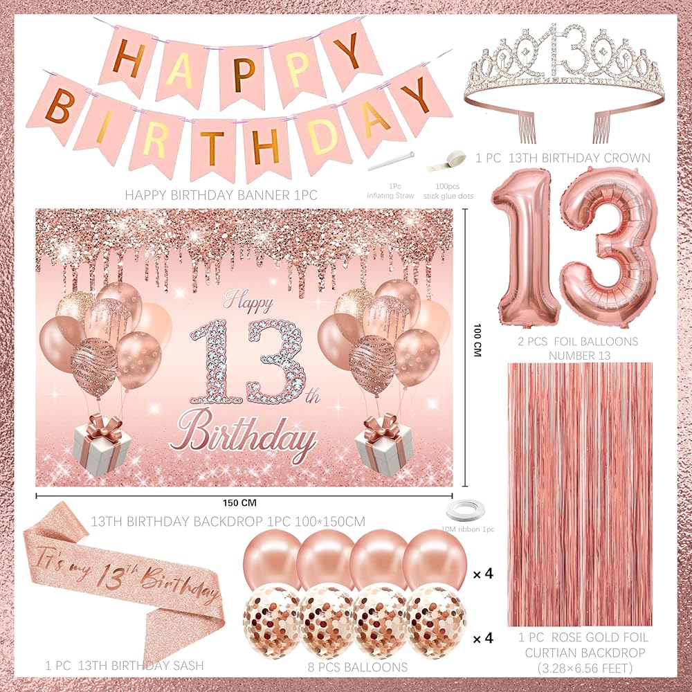 🎉 WHAT YOU GET - rose gold Themed 15th Birthday Decorations including rose gold 15th Birthday Backdrop, 40" rose gold balloons of number 15,1 Pcs pin happy birthday banner, 1pcs rose gold fringe curtain,8pcs rose gold balloons,Glittery 15th tiara/crown,"It's my 15th birthday" sash,they are exquisitely packaged in the box.