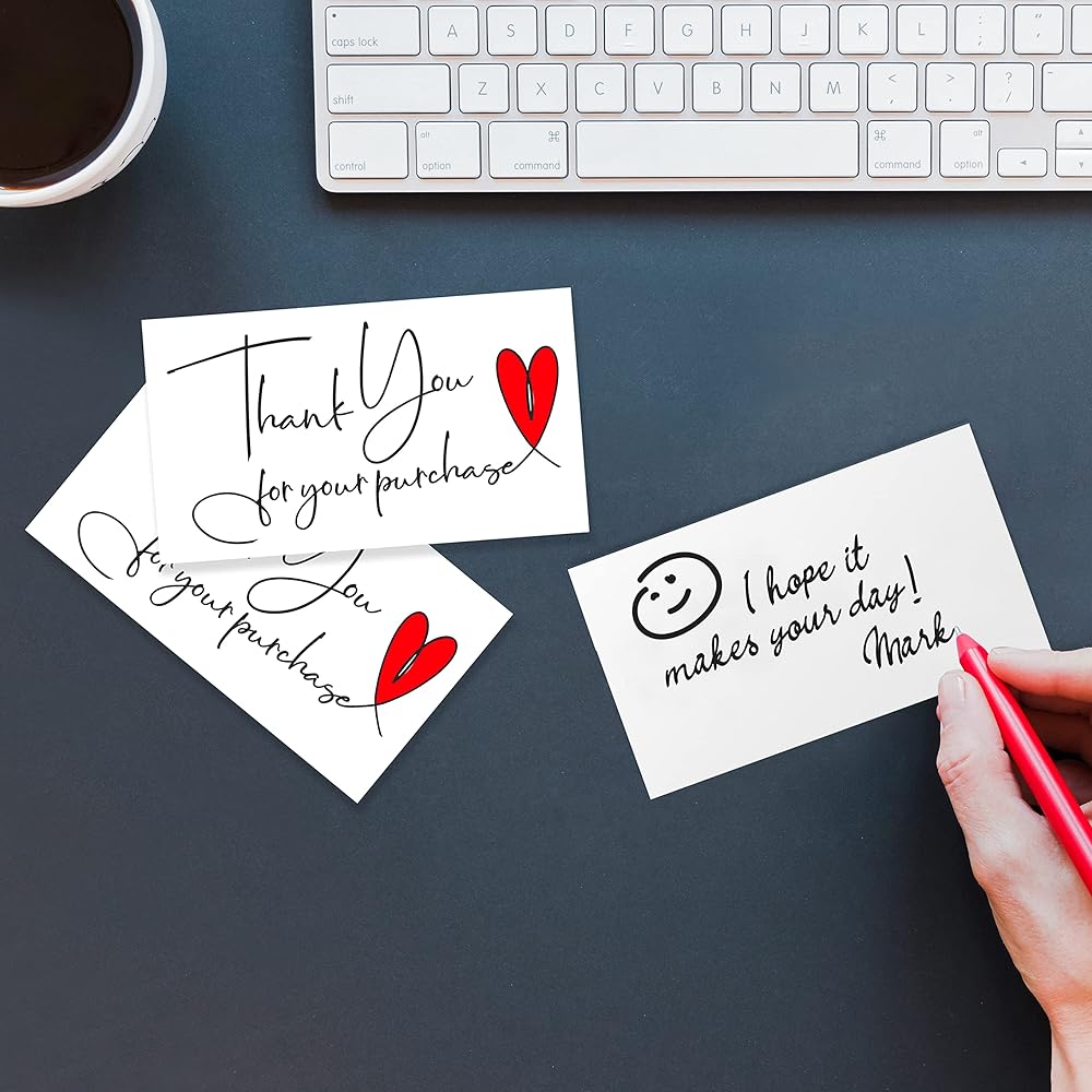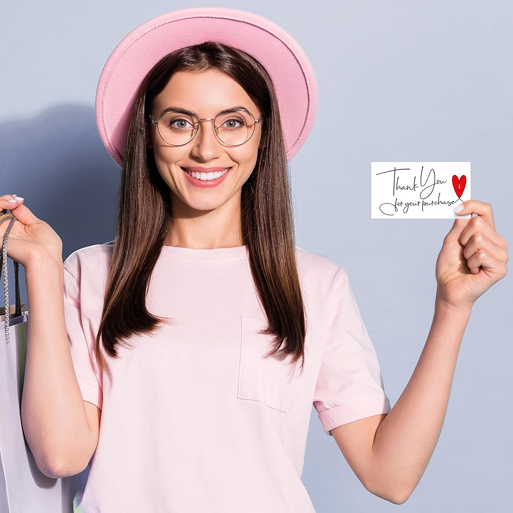 Perfect Size : These Thank You For Purchase Small Business Cards are 2 x 3.5 Inch In size which gives enough space at the back to write a personal note to express your gratitude to your customers or stamp your store address with your company logo stickers.