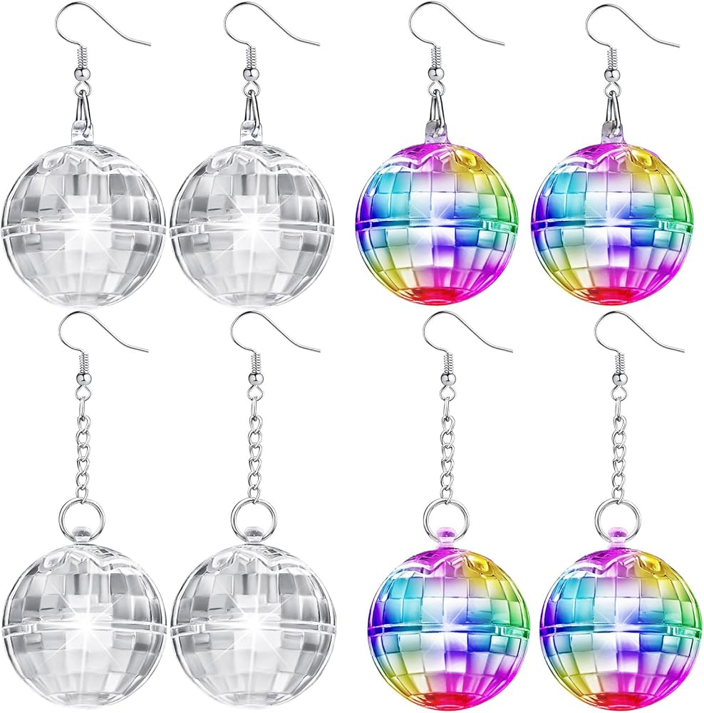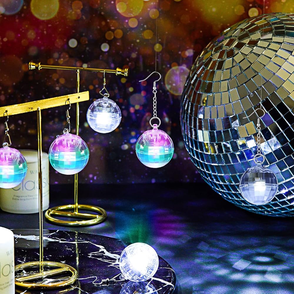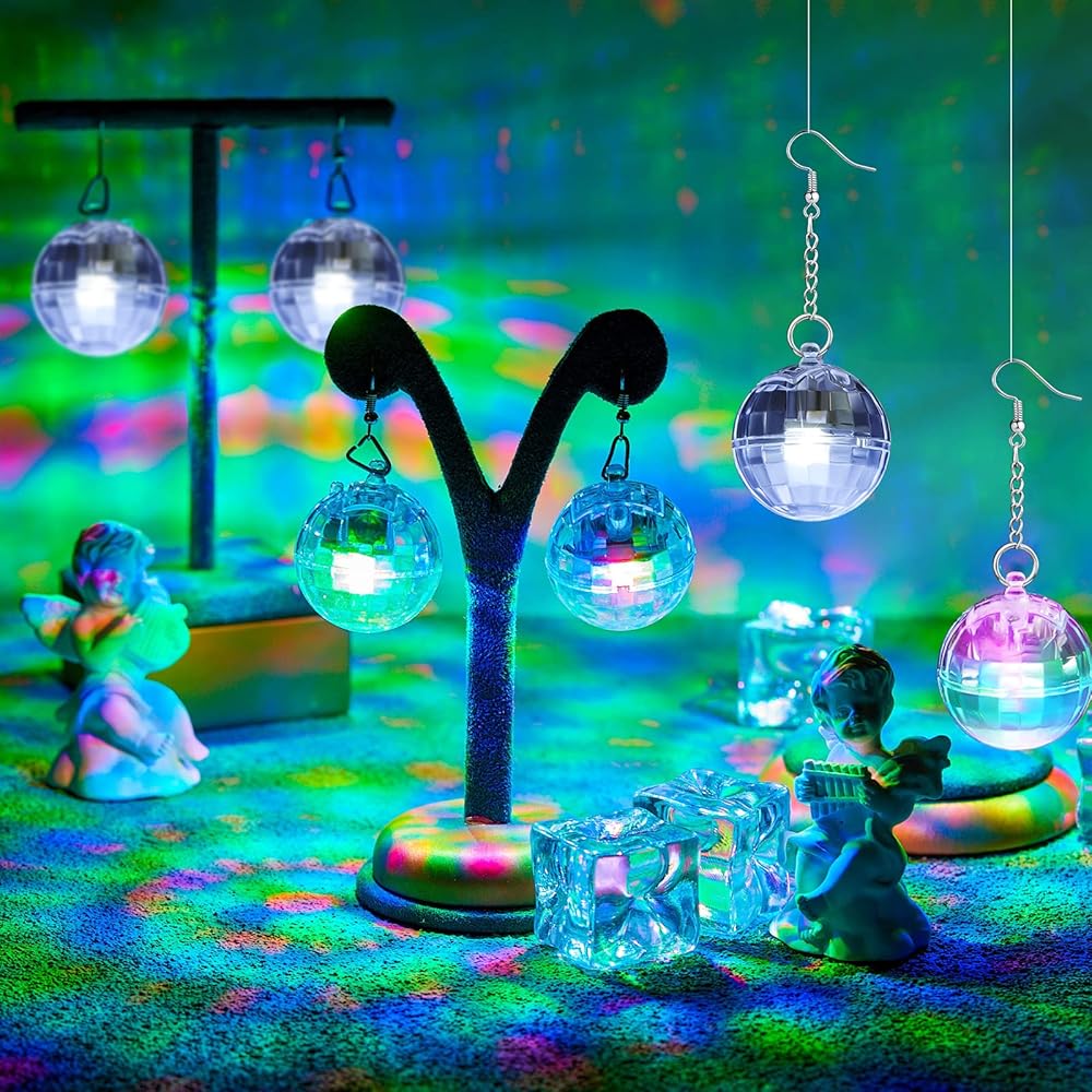 Henoyso 4 Pairs Light up Disco Ball Earrings Jewelry LED New Year Light Glow Earrings for Women Girls Christmas Disco Party Favor Bachelorette Dance Costume Accessories