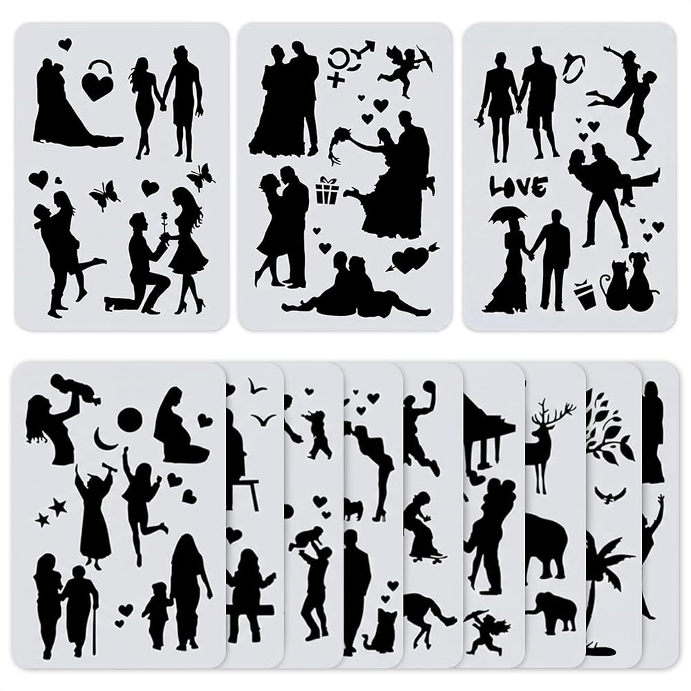 Cute Bullet Journal Reusable Stencils For Painting Stencil Sheets DIY Drawing Canvas Craft Project: The stencils for painting on walls are made of high-quality PET materials, durable and reusable. With good flexibility, sturdy to apply and safe, convenient to wash and remove the paint with soapy water. This wall stencils for painting large pattern is a good tool for painting art projects, drawing diary scrapbook bullet notebooks, DIY scrapbooking journal albums, making photo album cards, painting on your gift boxes, paper cards. Specifications: Material: PET Color: Milky white translucent Size: 11.69 x 8.27 inches Package Includes: 12 x face painting stencils Easy To Use: Just place the pattern on top of the surface (paper, wood, or fabric), then trace, paint or spray over. Trace with a pencil, apply with sponge brushes or air spray. The painting wall art journal stencil is the easiest way to be creative even without having to draw. DIY Projects: This bullet journal template stencil set is perfect for art projects, scrapbooking, bookmarks, greeting cards. A thoughtful Christmas gift for friends, family, or anyone who loves crafting and creating handmade treasures This bullet journal kit inspire to be creative and create cool designs. These large stencils for painting wall have no sharp edges so they are definitely safe for all. Wide Compatible: These large wall stencils for painting work excellently with different surfaces. You can apply these bird stencil to fabric, wood, and ceramic. These cutouts fit your pen, ballpoint pen, chalk, pencil, crayons, markers, gel pens. Mix and match the patterns to add artistic touch and create stunning artwork.