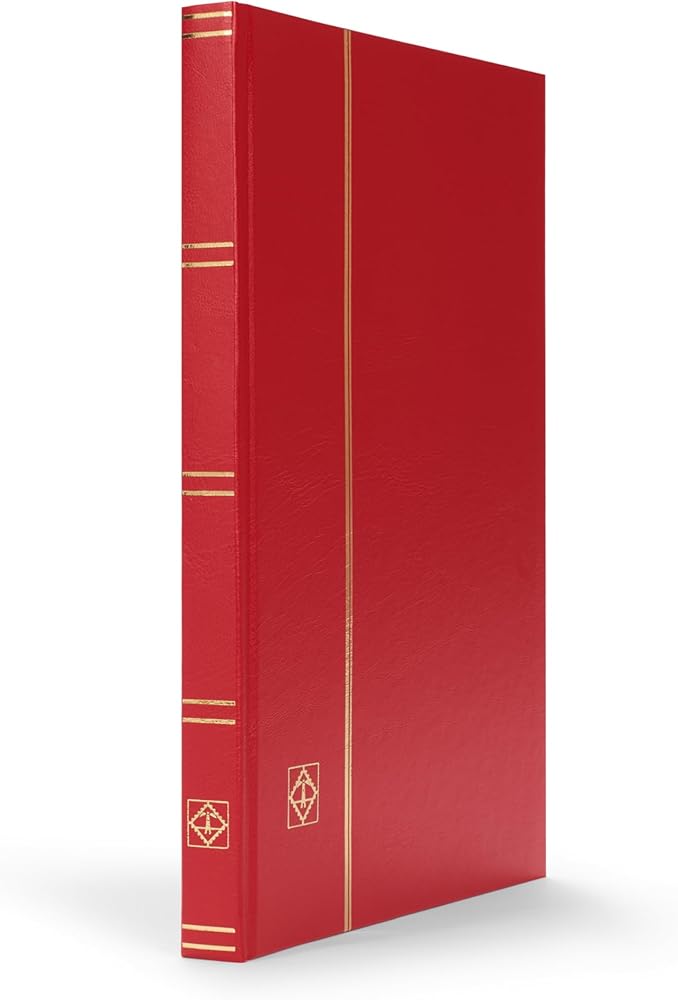 LIGHTHOUSE – “BASIC" Hard Cover Stockbook for Stamps - 32 Black Cardstock 6"x9" (A5) Pages with Clear Strips - Red