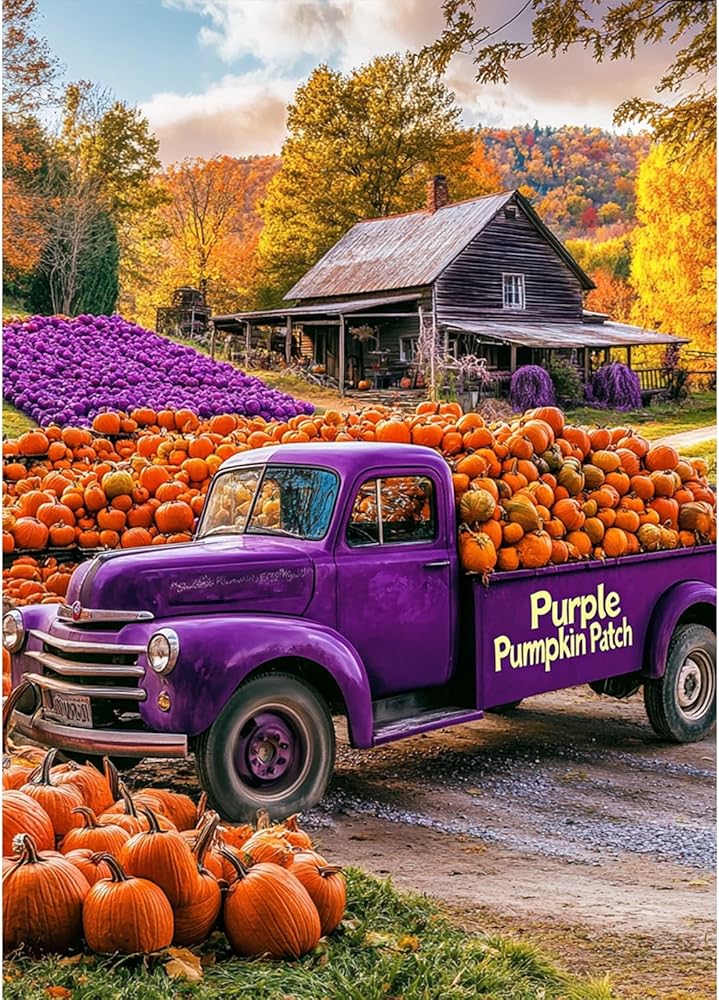 RICUVED Truck Diamond Art Kits for Adults, Pumpkin Diamond Painting Kits for Beginners, Autumn DIY 5D Full Round Drill Gem Crystal Rhinestone Art and Craft Kit for Gift Home Wall Decor 12x16Inch