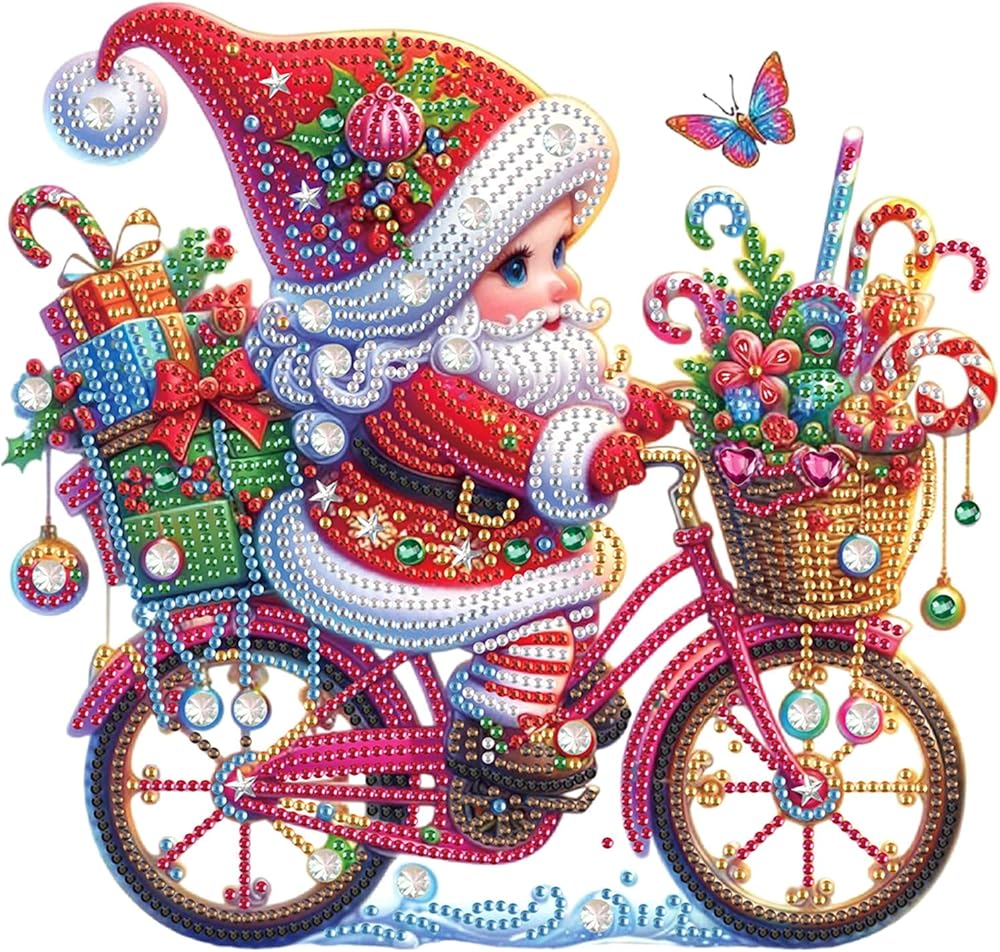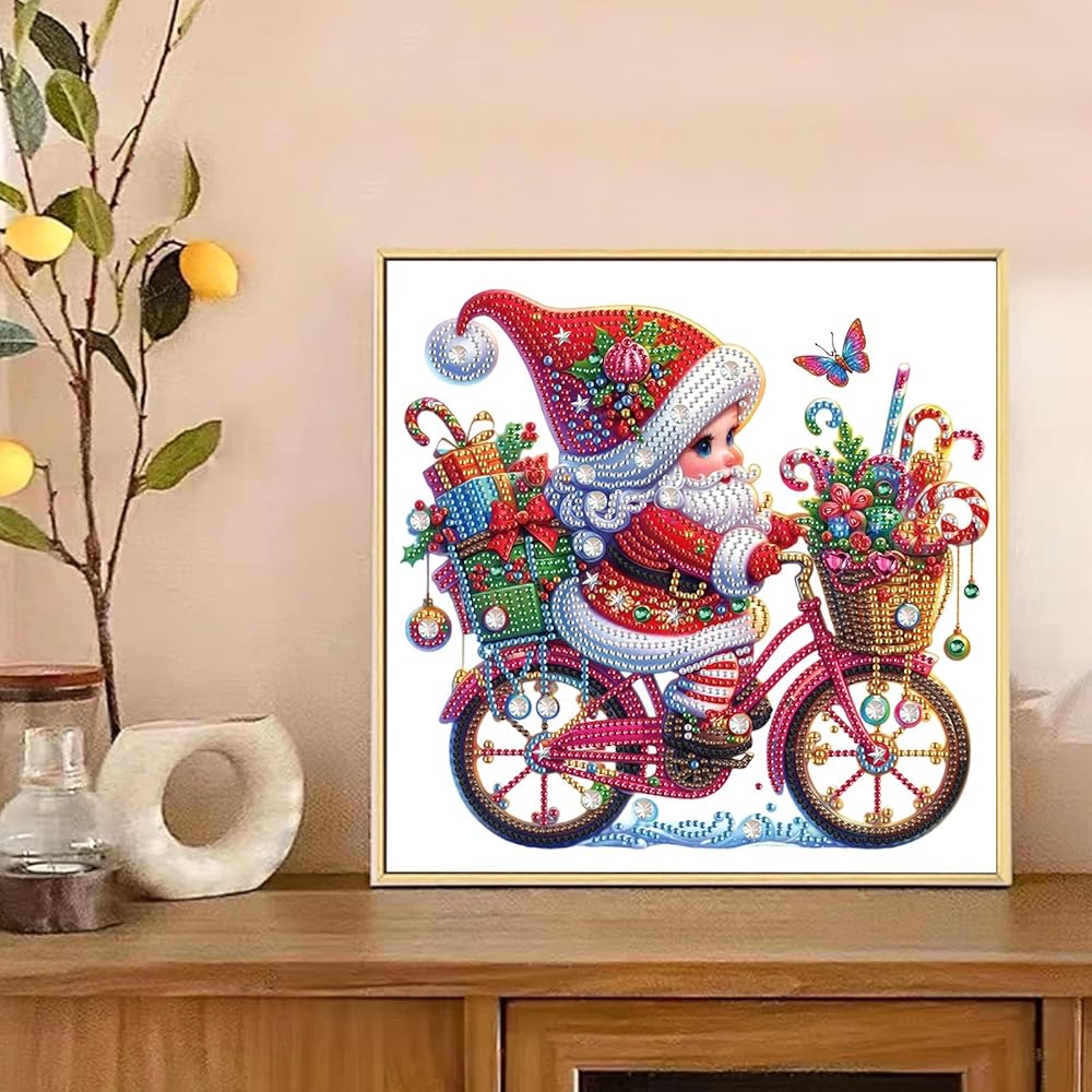 Christmas Diamond Art Painting Kit, 5D DIY Santa Claus ride a bike, Special Shape Crystal Diamond Partial Diamond Art Painting Mosaic Handicraft, Wall Art decor For Bedroom, Office, Living Room Gift