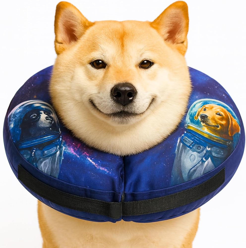 Soft Inflatable Dog Cone for After Surgery – Comfortable Donut E-Collar Alternative to Prevent Licking & Scratching – Adjustable Recovery Collar for Medium Dogs – Washable Protective Neck Pillow