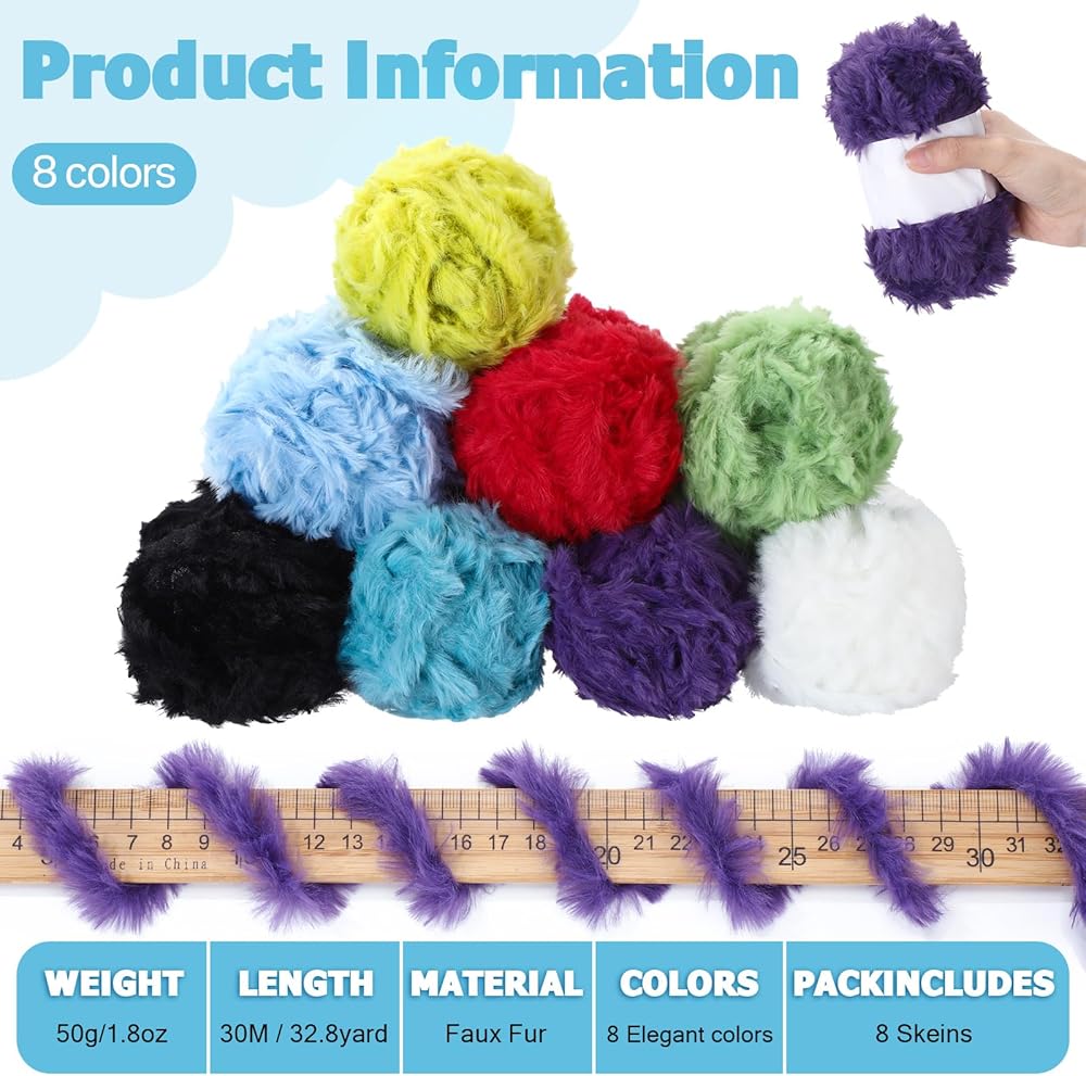 Furry yarn is known for its softness. A good companion for your crocheting projects that require softness, such as baby blankets, stuffed animals, or hats. Not only does this soft texture make your projects more comfortable to wear and touch, but it also ensures hours of pleasant crocheting experience without irritating your hands.