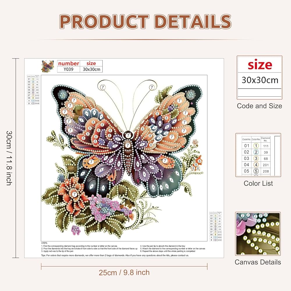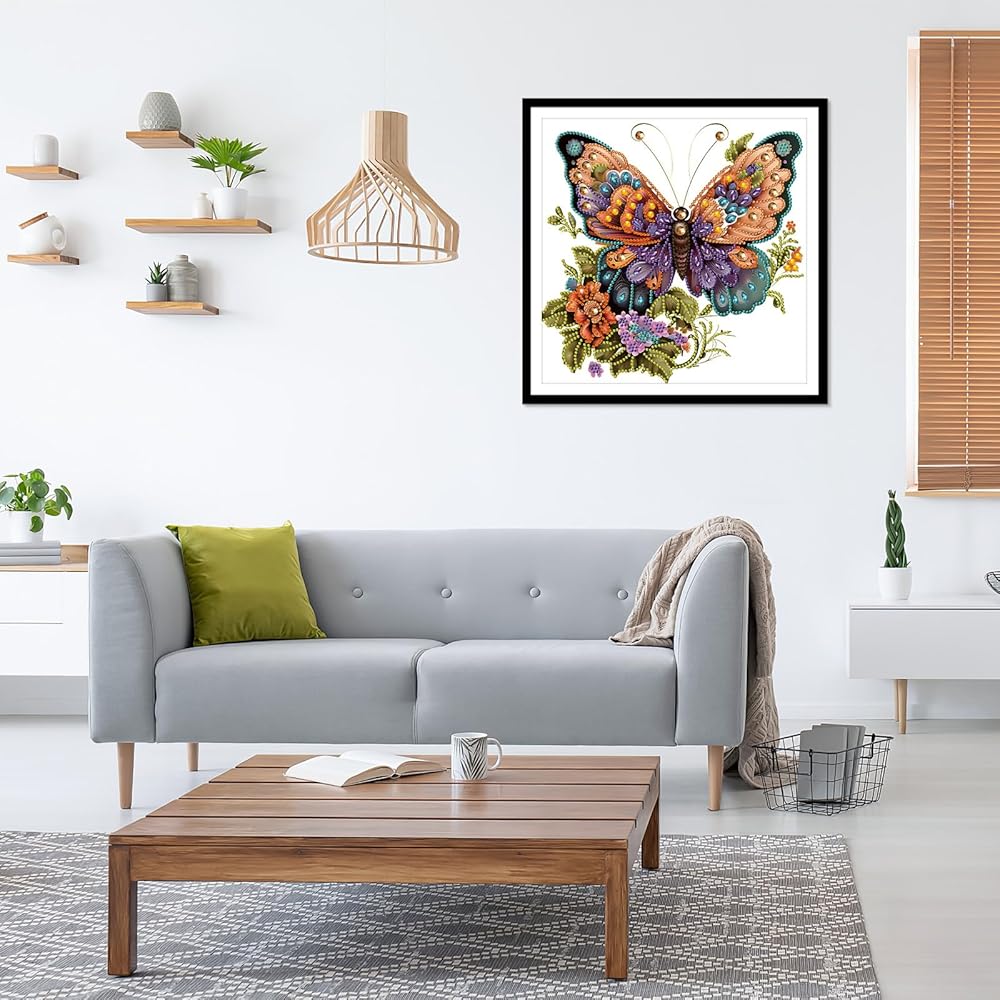 EOBROMD Diamond Art Kits for Adults, Butterfly DIY Diamond Painting Kits for Beginners, Crystal Rhinestones Diamond Painting for Home Wall Art Decoration