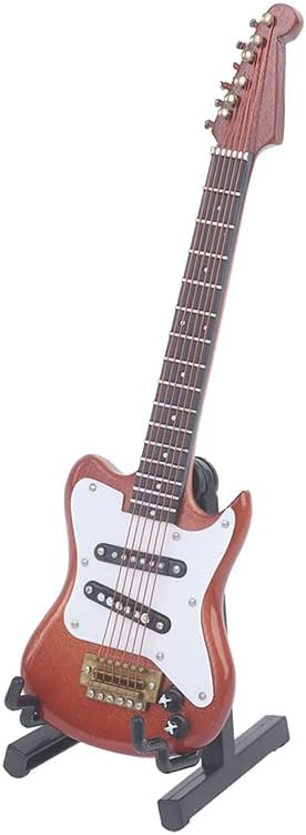 1/6 Miniature Guitar Model Dollhouse Wooden Guitar Wooden Musical Instrument with Stands Mini Guitar Ornament Children's Room Decoration Small Crafts Ornaments Home Decor (Brown)