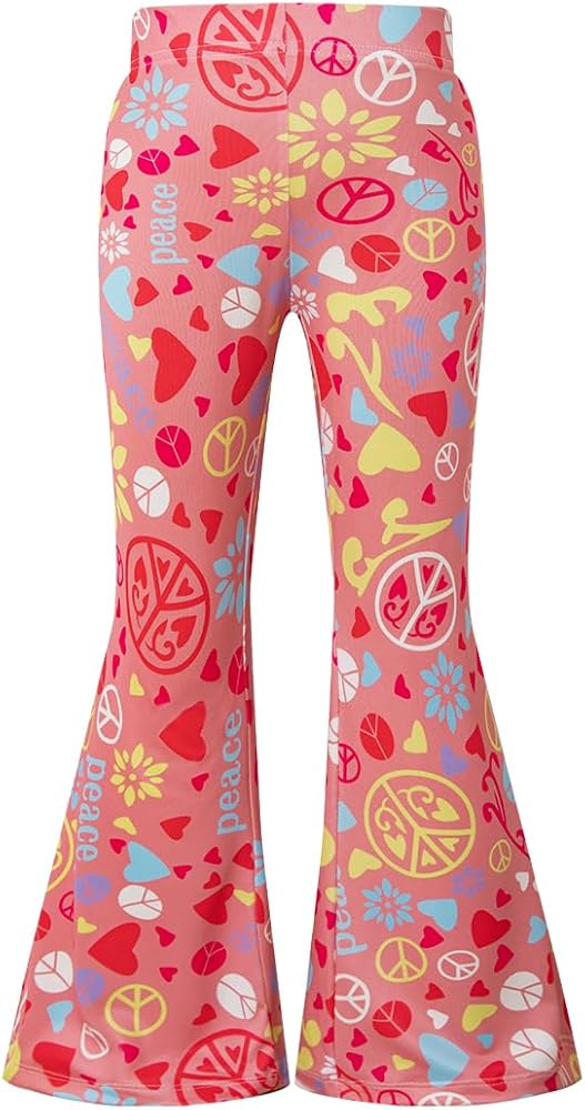 Kids Girls 60s 70s Hippie Costume Pants Set Fringe Vest Peace Flared Pants Outfits Accessories Set