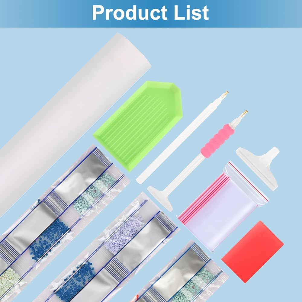 • diamond art Kits:Round diamonds full drill of the whole picture, each diamond is colorful and sparkling. If you have enough time and patience to complete this challenge, you will get a sense of accomplishment.Each diamond art toolkit contains a set of tools for making drawings, so there is no need to purchase any other toolkits.