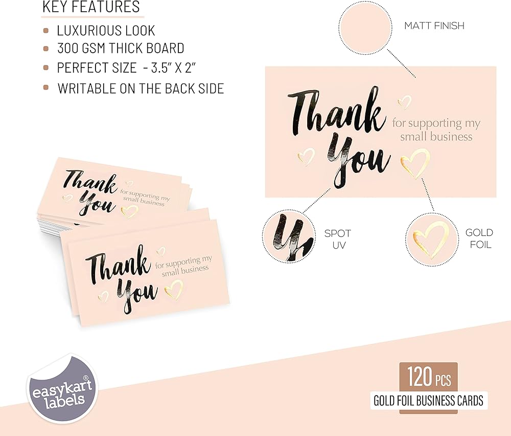 easykart labels 120 Thank You For Supporting My Small Business Cards, Gold Foil Business Card Size 3.5" x2", Thank You Cards for Online Retail Shop, Small Business, Customer Package Inserts