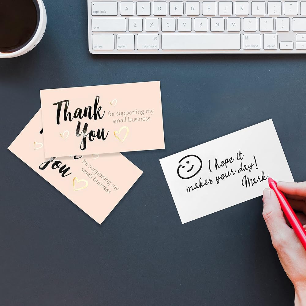 Perfect Size : These thank you for supporting my small business cards are 2 x 3.5 Inch In size which gives enough space at the back to write a personal note to express your gratitude to your customers or stamp your store address with your company logo stickers.