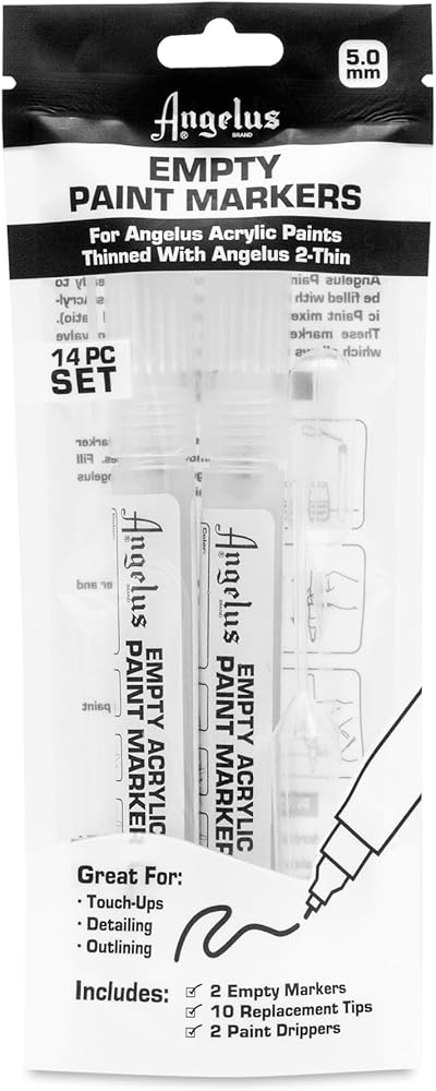 - Ready to be filled with your choice of Angelus Acrylic paint mixed with Angelus 2-thin (1: 1 ratio)