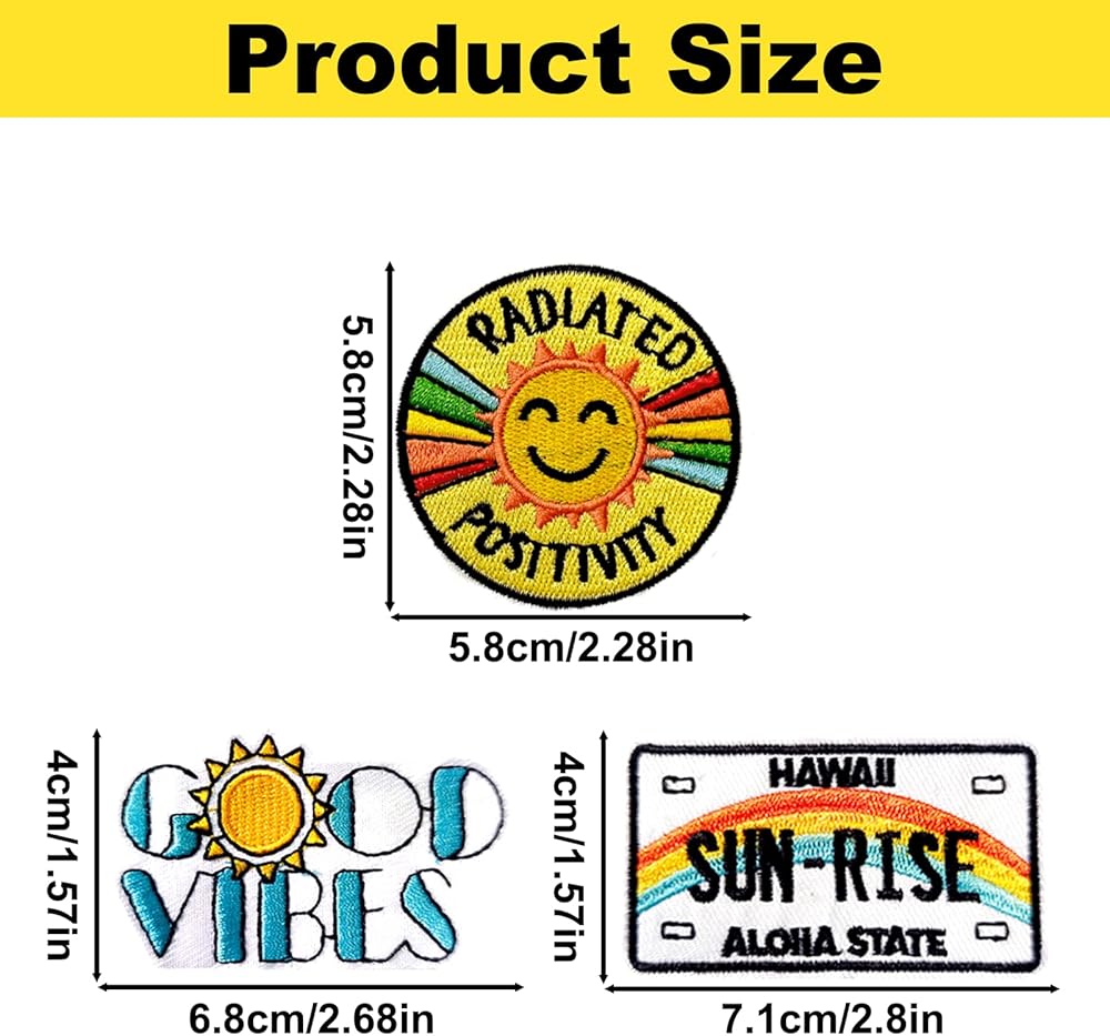 6PCS Good Vibes Iron on Patches, Sun Rise Rainbow Embroidered Applique, Creative Iron on Sew on Decorative Emblem, Patches for Backpacks Clothing Repair T-Shirt Jeans Jacket Hats DIY Art Crafts