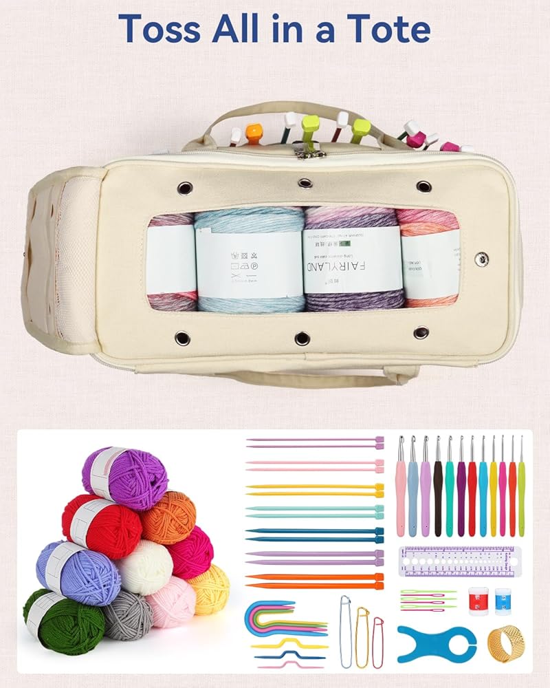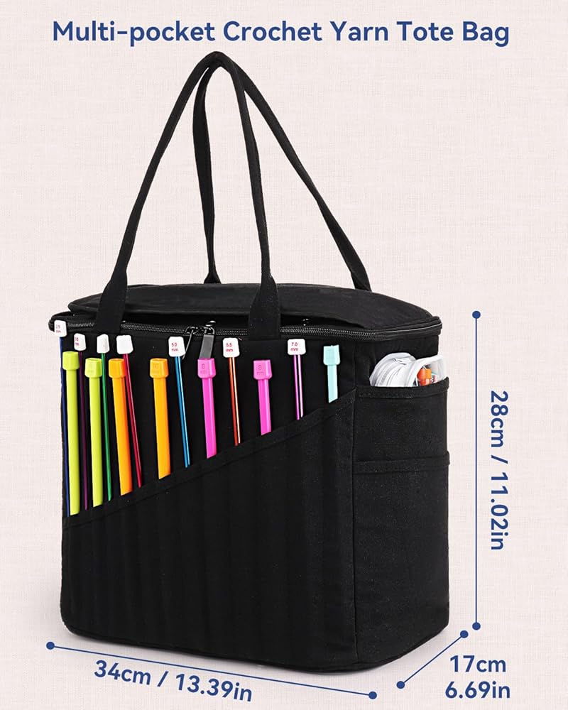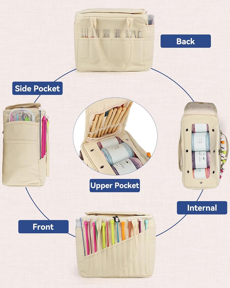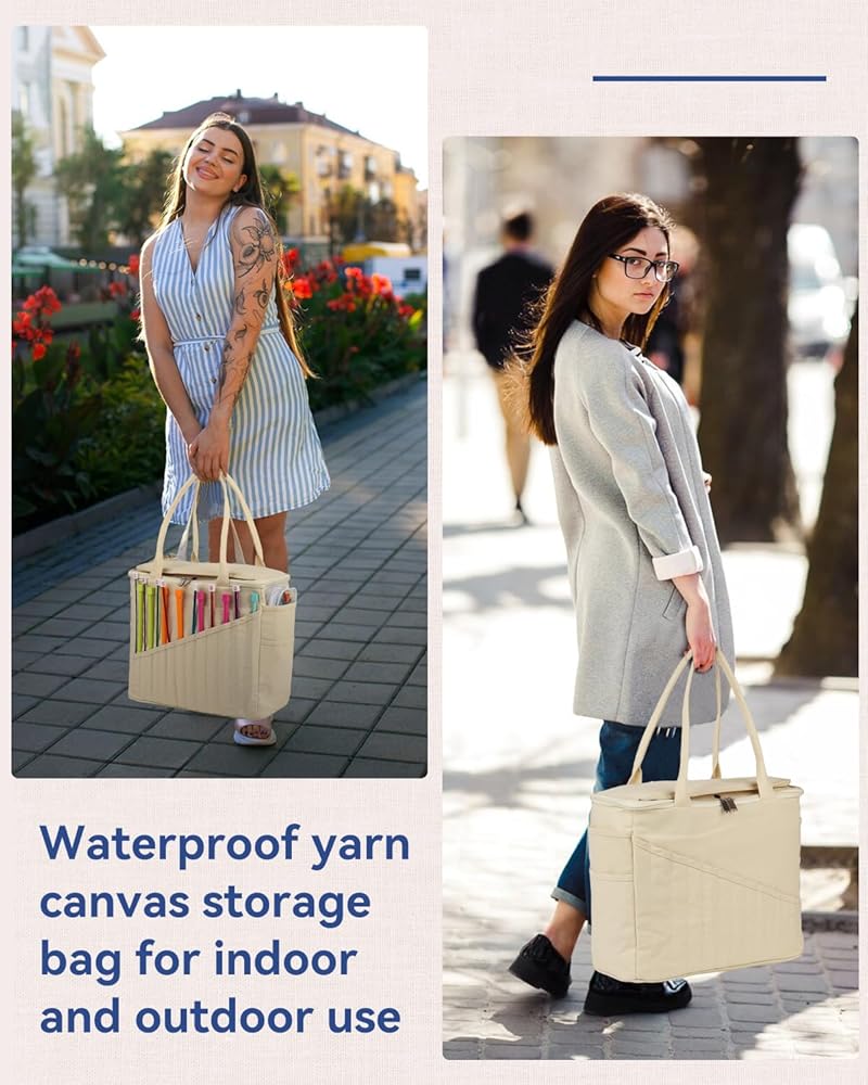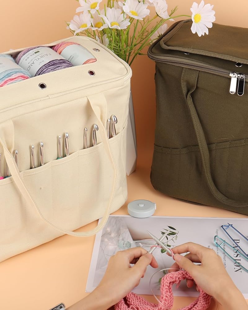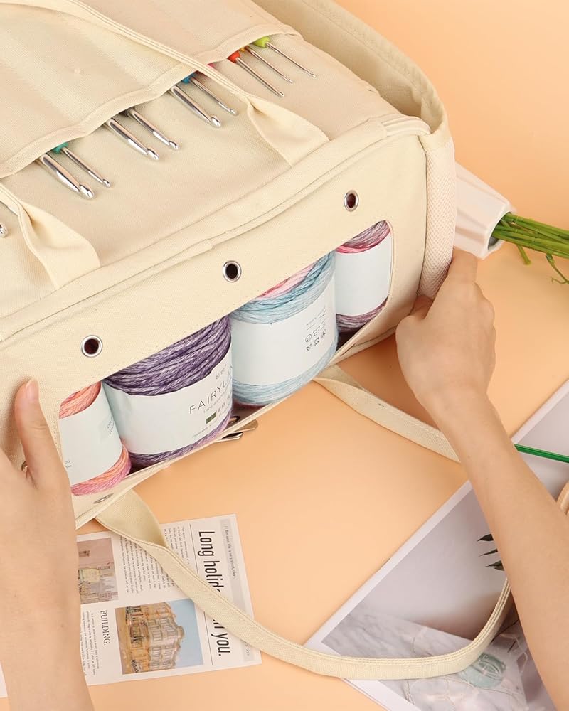 [Large Capacity Yarn Bag] - The canvas bag for professionals includes inner pockets for storing yarn. You could put with different projects without worrying about yarn tangles. Storing lots of yarn is not a problem if you're just storing yarn.