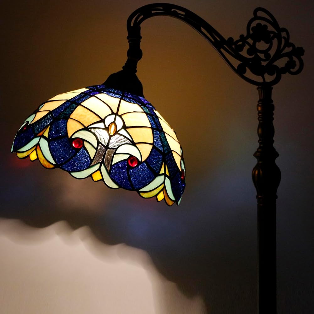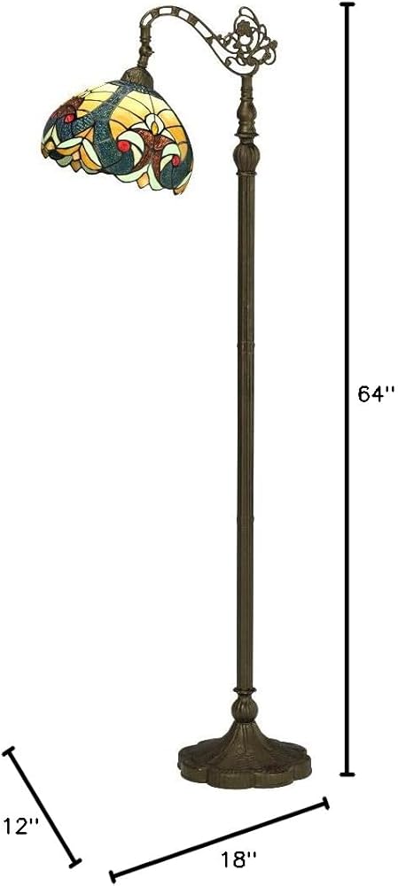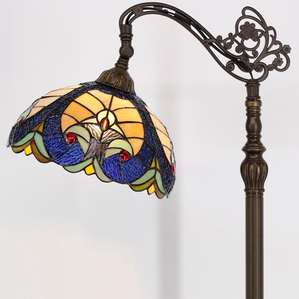 Werfactory Tiffany Floor Lamp Amber صفراء الاتصال الزجاجي الملون مصباح مقوسة 12x18x64 بوصة زاوية قابلة للتعديل قابلة للوقوف القراءة ديكور غرفة نوم غرفة المعيشة S160E