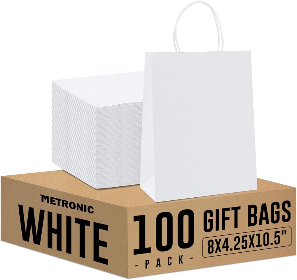 Eco-friendly Gift Bags Large Size: Metronic paper bags are made of recycled paper and FSC compliant. Our kraft paper bags are reusable, recyclable, degradable, compostable, and a great alternative to plastic bags.The shopping bags size are 16x6x12 inch,pack of 50pcs