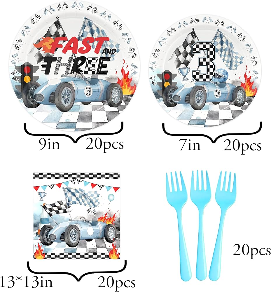 Race Car 3rd Birthday Party Decorations,3th Birthday Race Car Theme Party Decor Supplies,Fast and Three Birthday party,3rd Birthday Decorations For Boys.