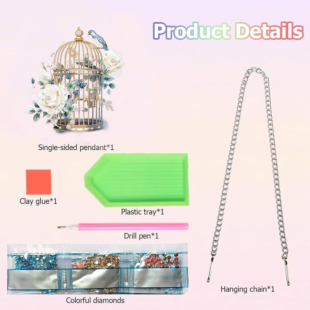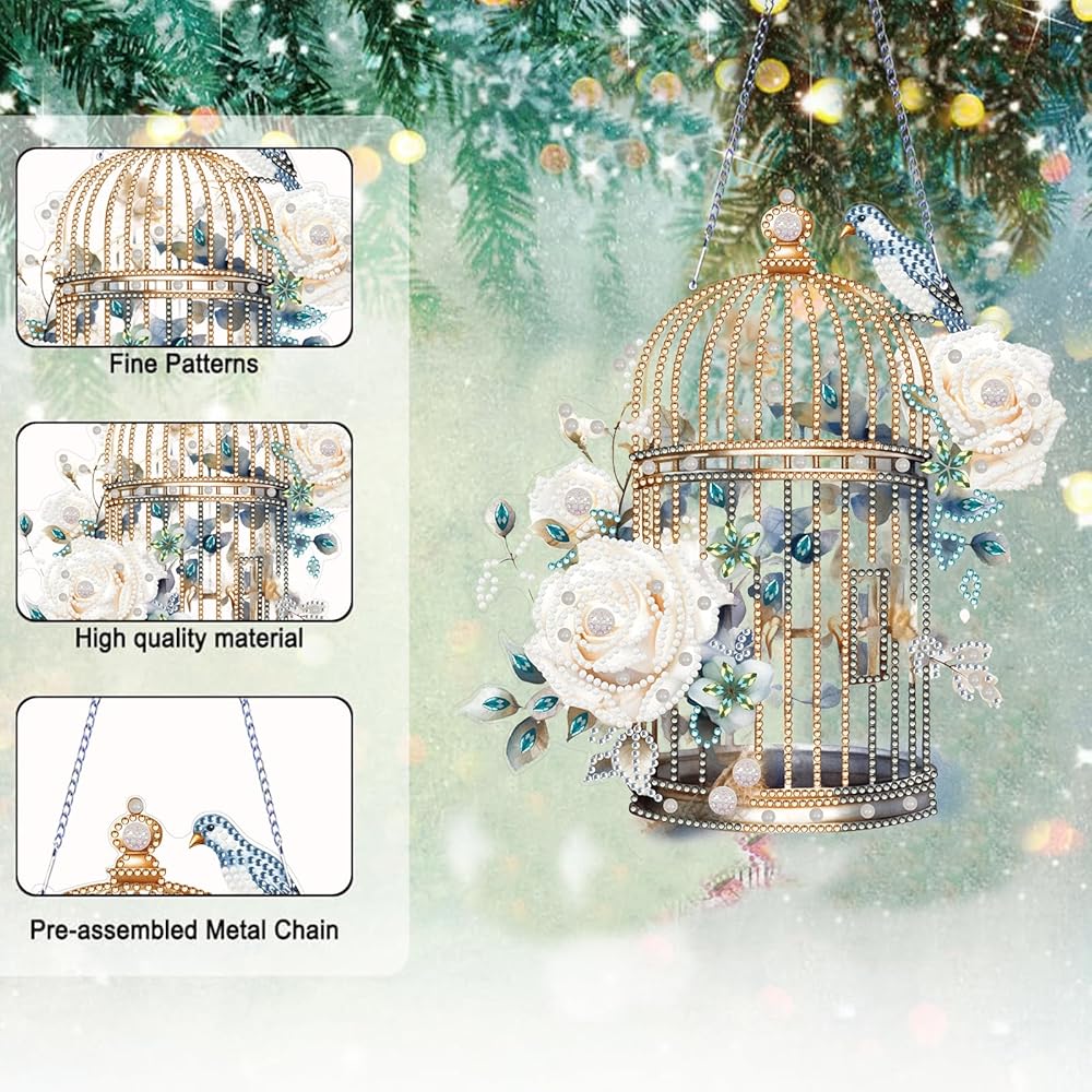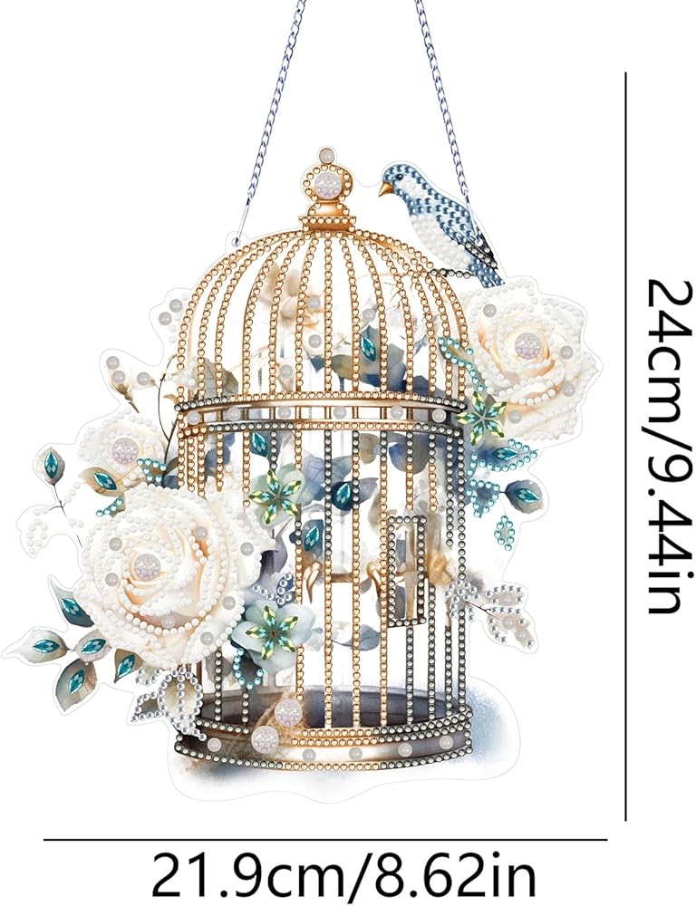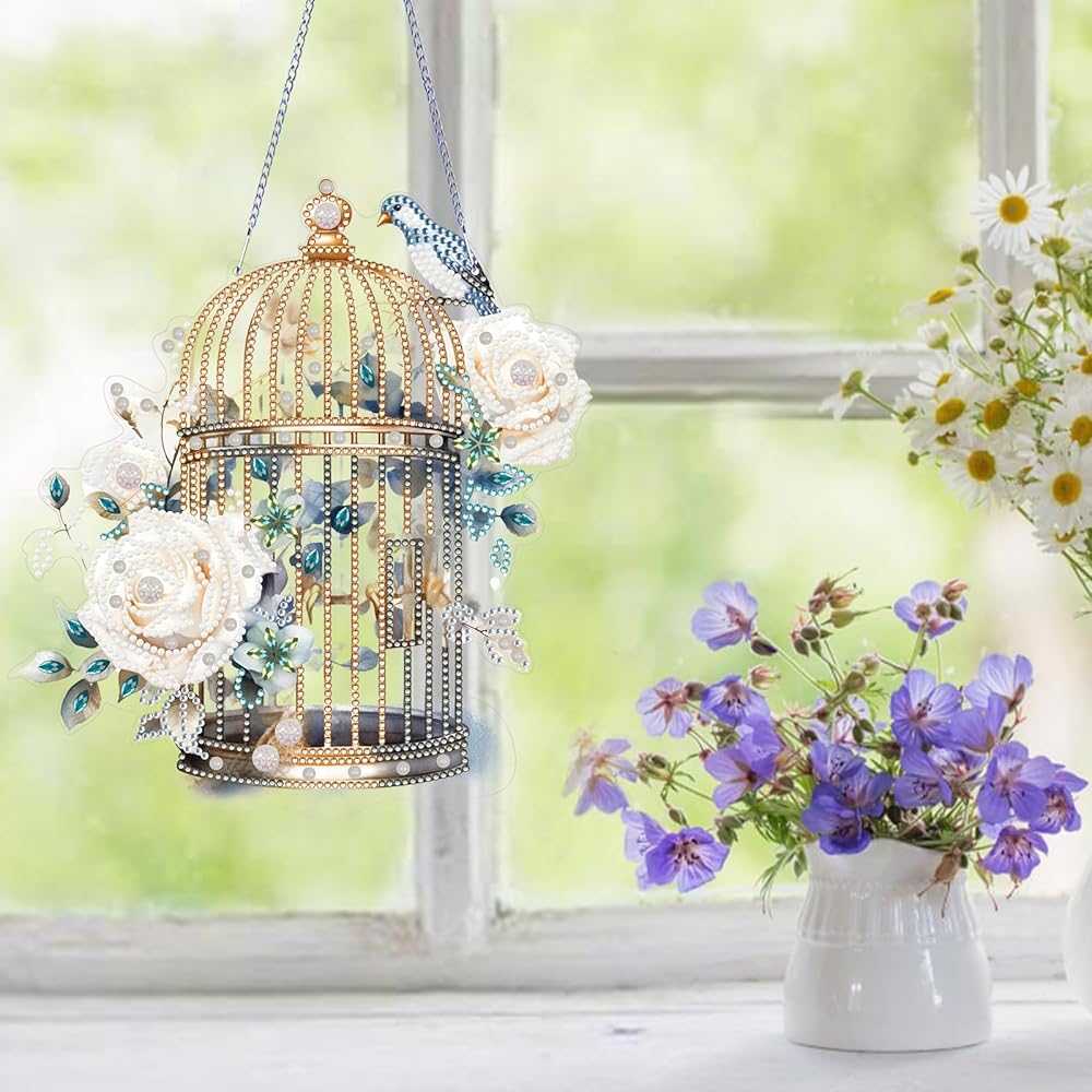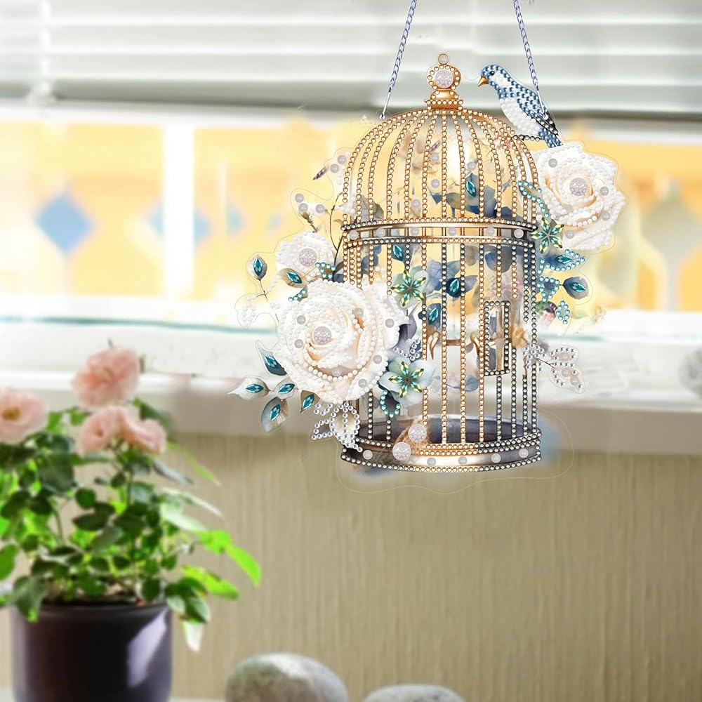 Flower Bird Cage Diamond Art Painting Pendant - A fun DIY activity that can relieve stress and enrich your spare time.Diamond art hpainting anging pendant combines diamond painting technique and simple paste operation, easy to finish by yourself, a good way to reduce stress, also you can enjoy funny DIY experience and get a sense of achievement and happiness, suitable for diamond painting beginners and enthusiast .