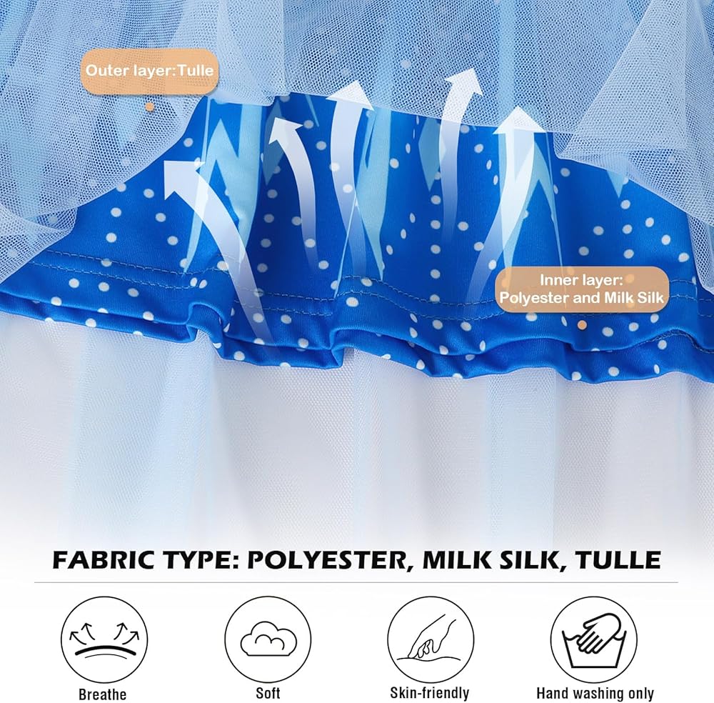 Girls costume dress is made of polyester and milk silk material, with a mesh tulle fabric skirt, breathable lining, comfortable, soft, skin-friendly, not itchy, take care of your child's skin. Adorable and beautiful dress up outfits, make your little girls feel like a real princess!