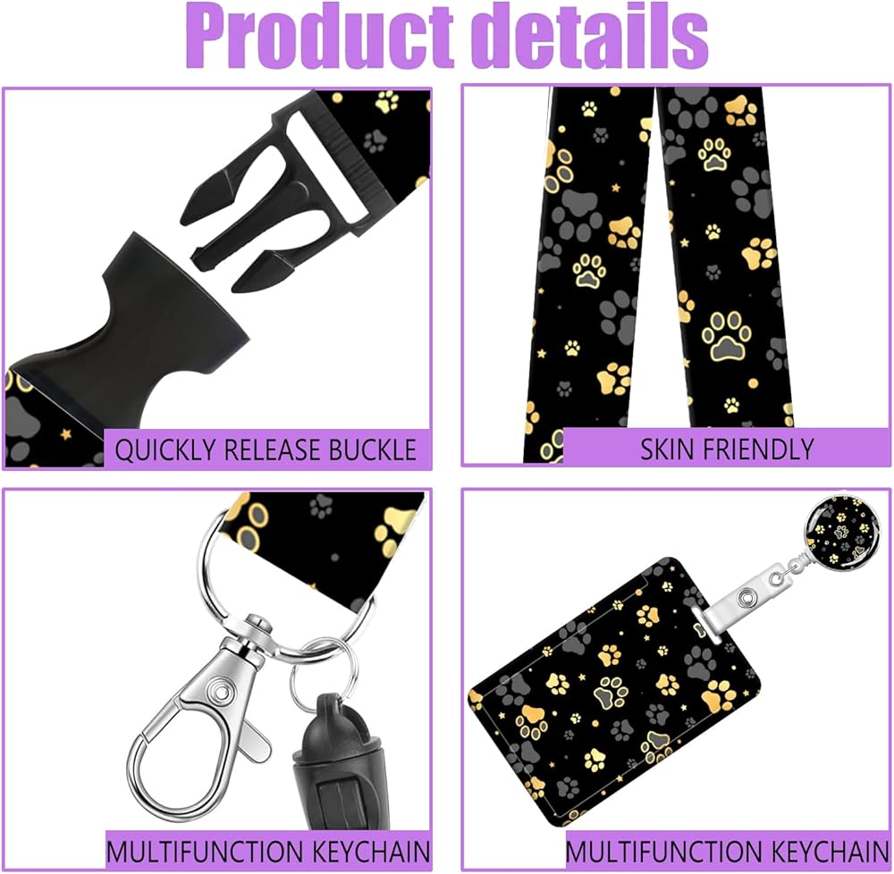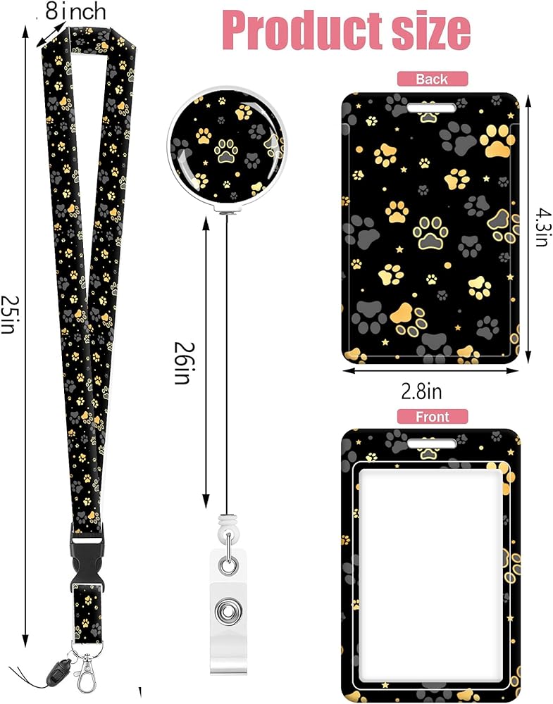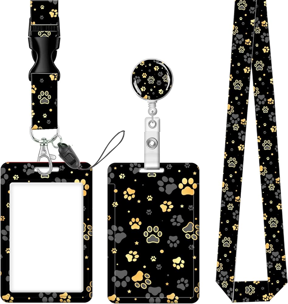 Badge Reels Retractable with Carabiner Reel Clip, ID Name Tag Work Badge Holder Belt Ferrule, Identity ID Badge Holder Cover Case for Office Work Nurse Teacher Student Gifts(Black Gold Dog Paw)
