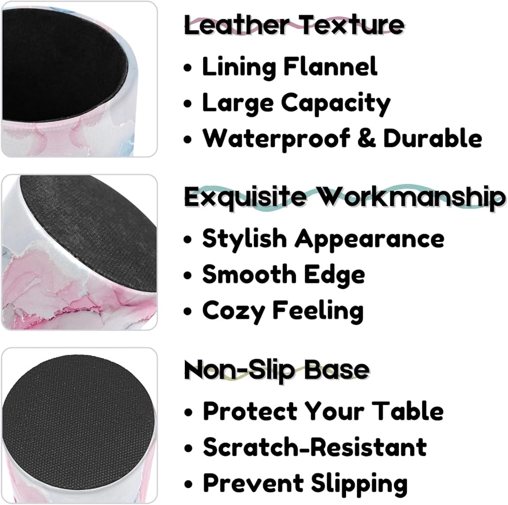 HIGH QUALITY DECORATIVE STORAGE BUCKET - The pen holder is covered with elegant and sturdy leather with exquisite stitching, and the inner structure is supported by cardboard and covered with velvet, which is high-end and elegant. The sturdy structure ensures long-term use and stability. Make your home decoration look stylish and chic, and can also be used as home storage. The geometric cylindrical shape is full of quality and is the best companion for your desk.