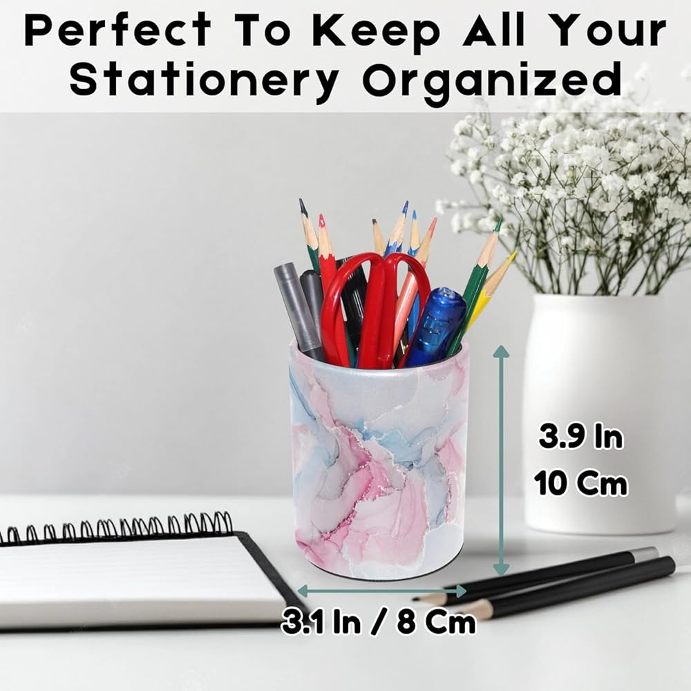 LARGE CAPACITY AND MULTI-FUNCTION - Large capacity decorative pencil holder, suitable for office desk study table, the pencil holder measures 3.9 inches high and 3.1 inches wide, which can hold a large number of pens, pencils, rulers, scissors, forks and makeup brushes and other small desktop items, so that everything is organized and decorates your desk and office in a simple and elegant way. We never have to worry about lack of space and messy desktops again!