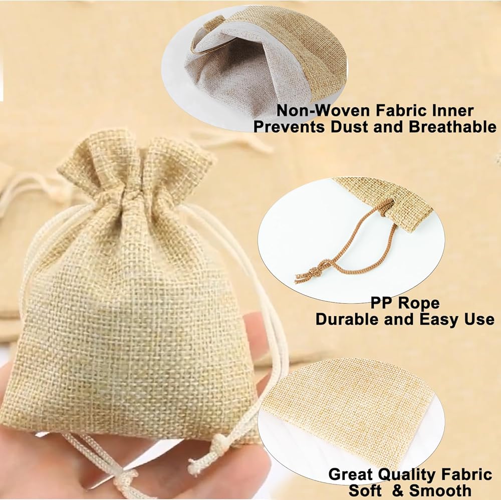 Size:.burlap bags with drawstring is ,2.7 x 3.5 Inch ,7 x 9 CM burlap bags with drawstring.