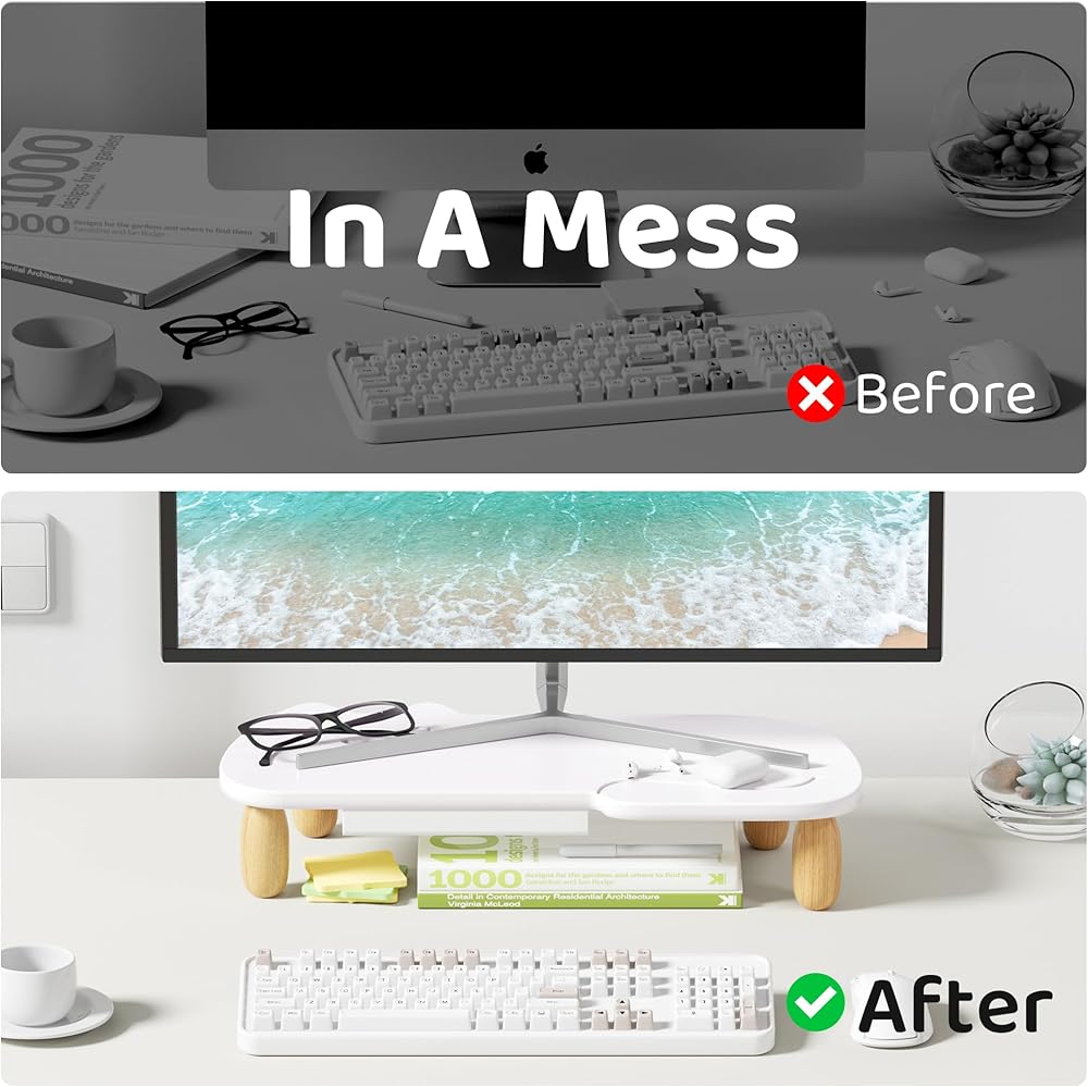 【Ergonomic Design】Featured ergonomic design, AFOOYO monitor stand raises your monitor screen to a comfortable eye level (about 3.2 inches) for relieving stress on the neck, shoulders and back, and improving work efficiency.