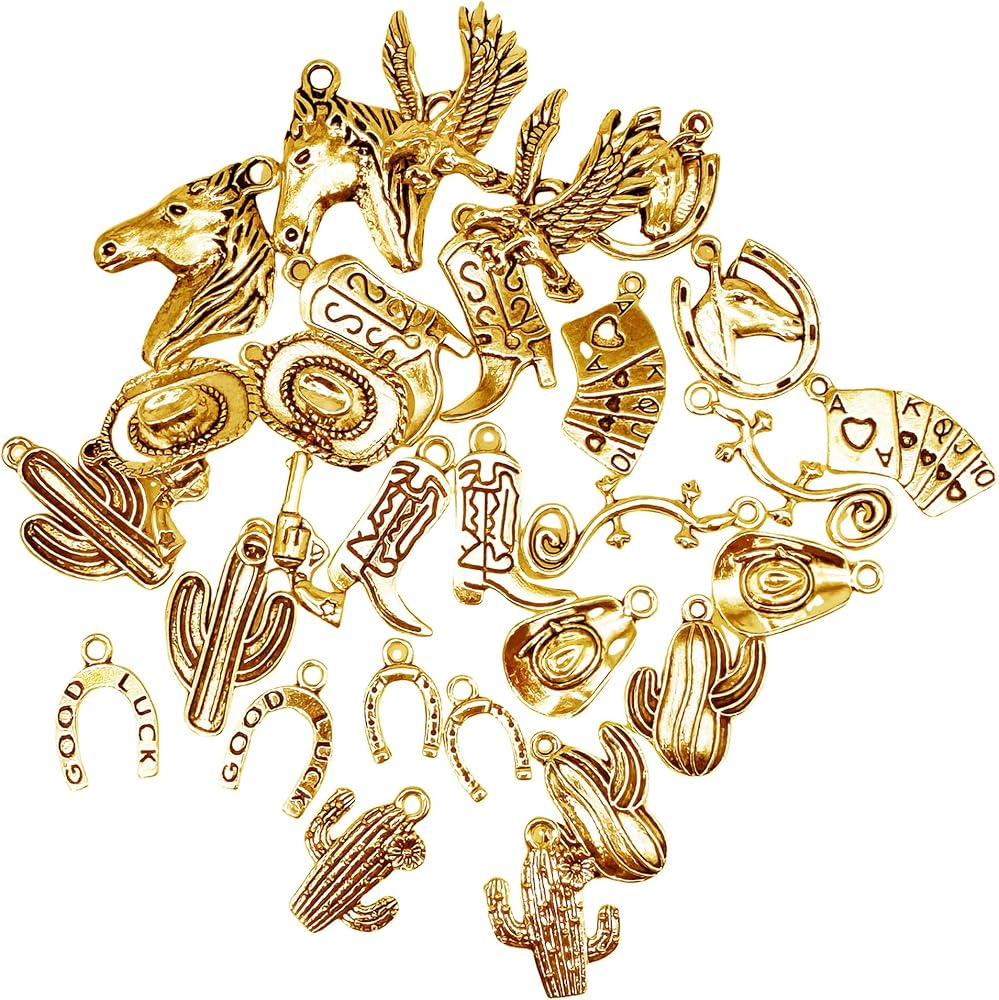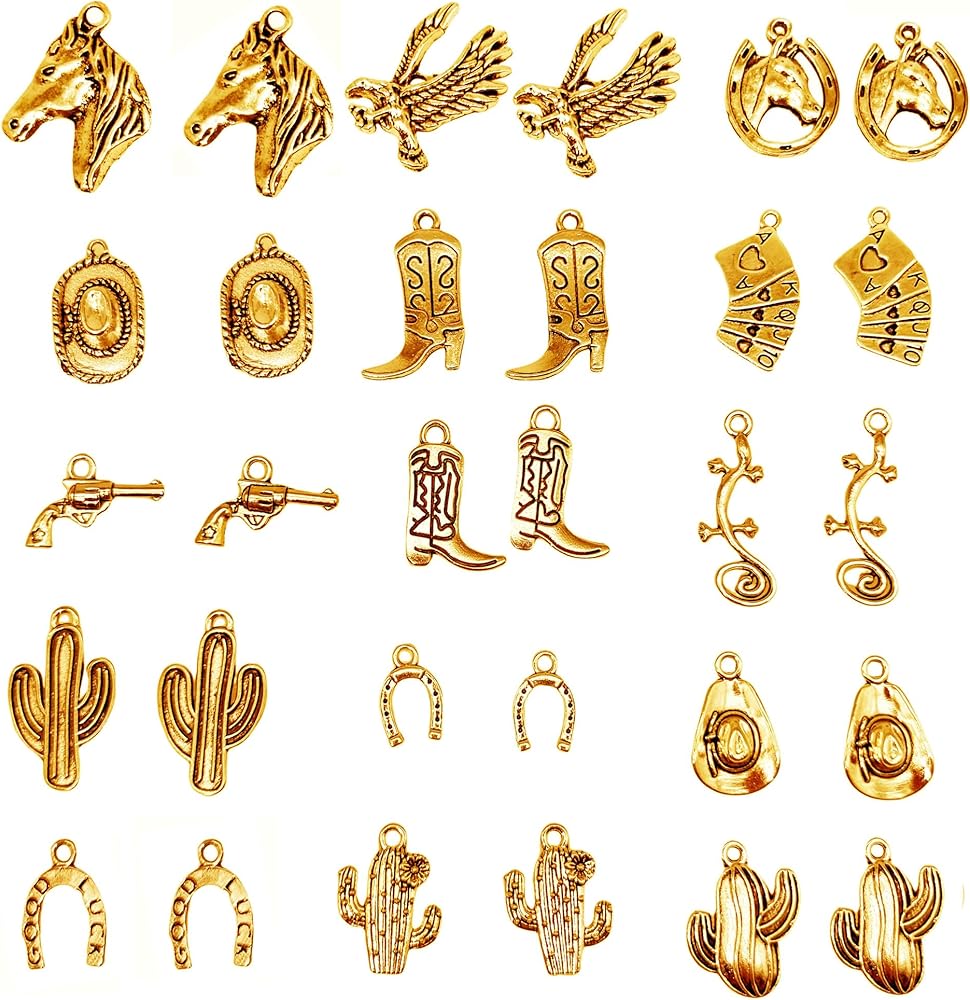 JJGQAZ 120 Pieces Western Cowboy Charms for Jewelry Making Antique Silver Golden Cowboy Boot Hat Cactus Horsehead Eagle Charms Western Pendant Cowboy Charms for Bracelet Necklace, 15 Styles