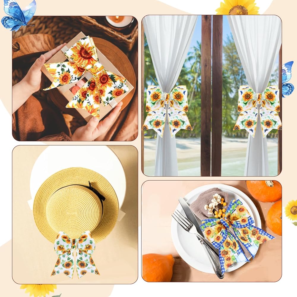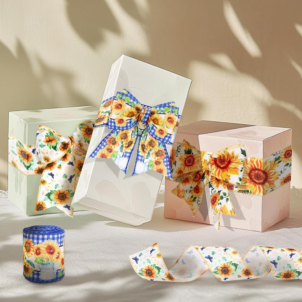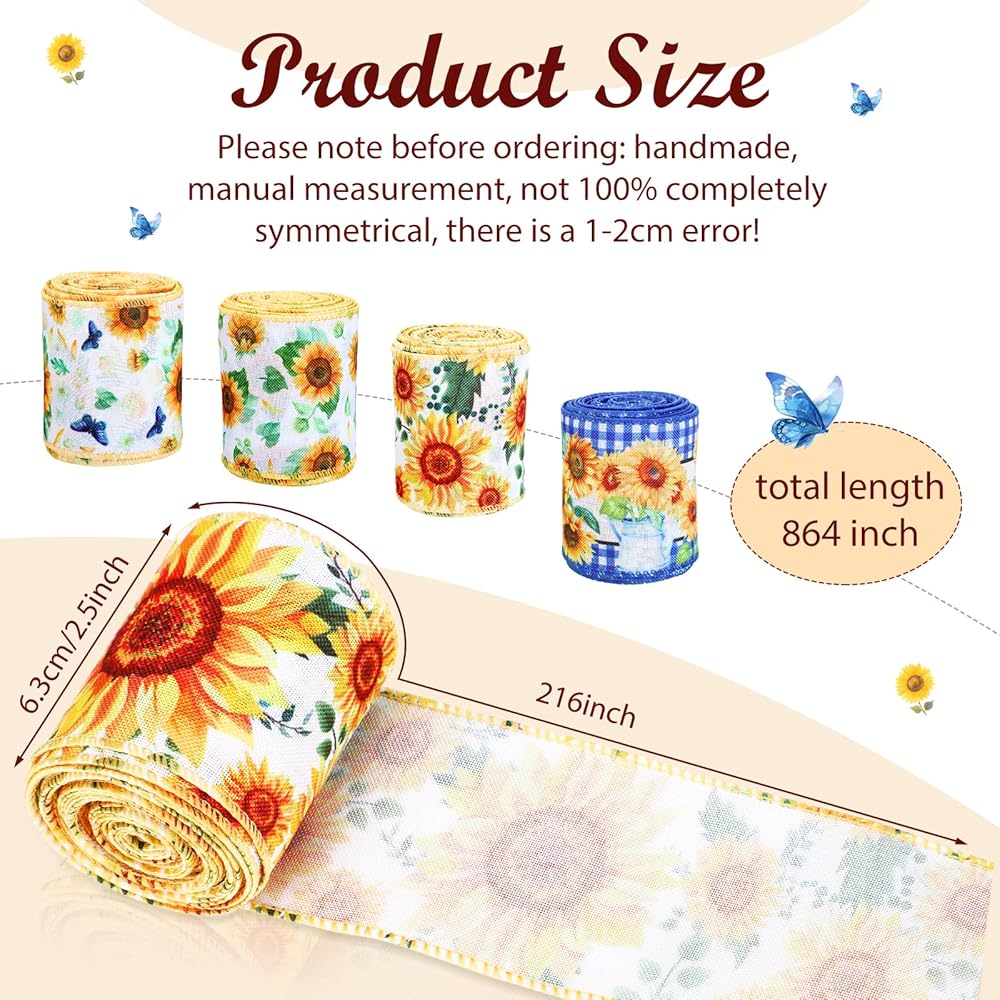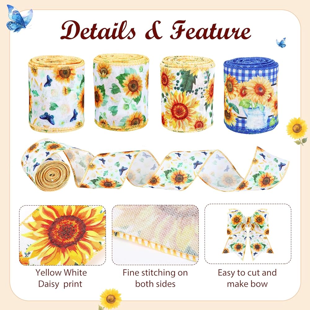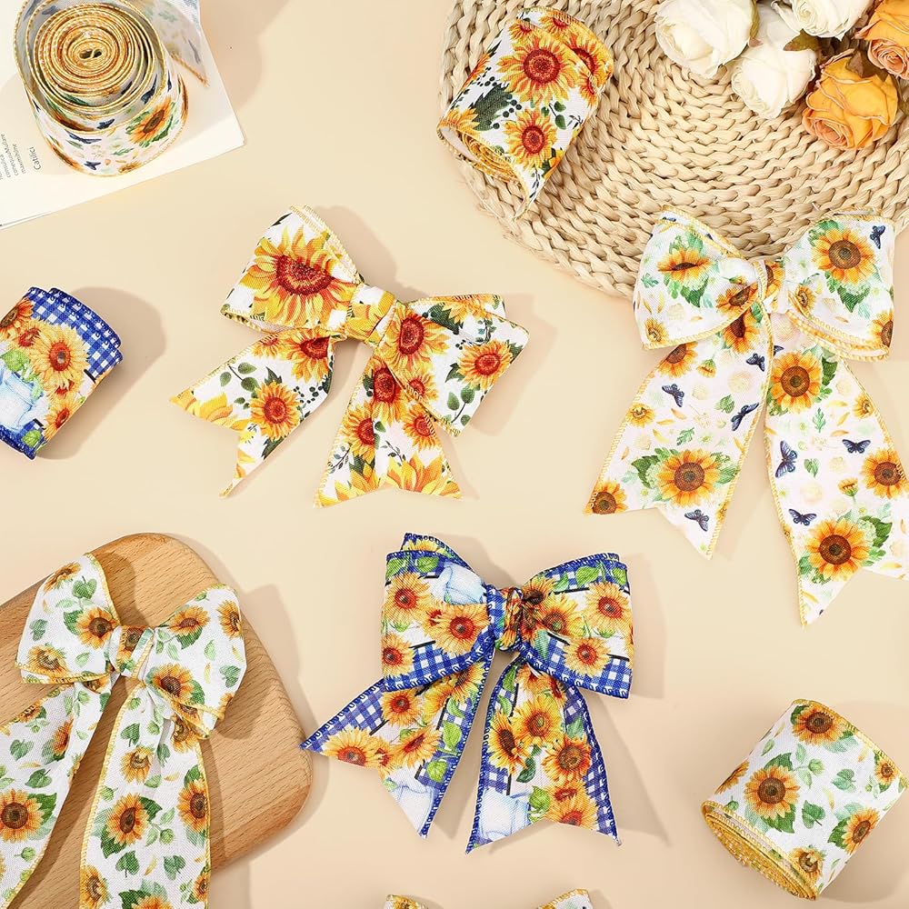 [Edge Reinforcement]:Our wired ribbon edges are implanted with soft metal wires,which keep the shape of the sunflower ribbon stable and at the same time are easy to shape and fix,ensuring that sunflower ribbon maintains its shape and stability when making decorations,suitable for all kinds of decorative needs,the natural sunflower pattern is a perfect blend of natural flavour and strong edges,which is both beautiful and practical.