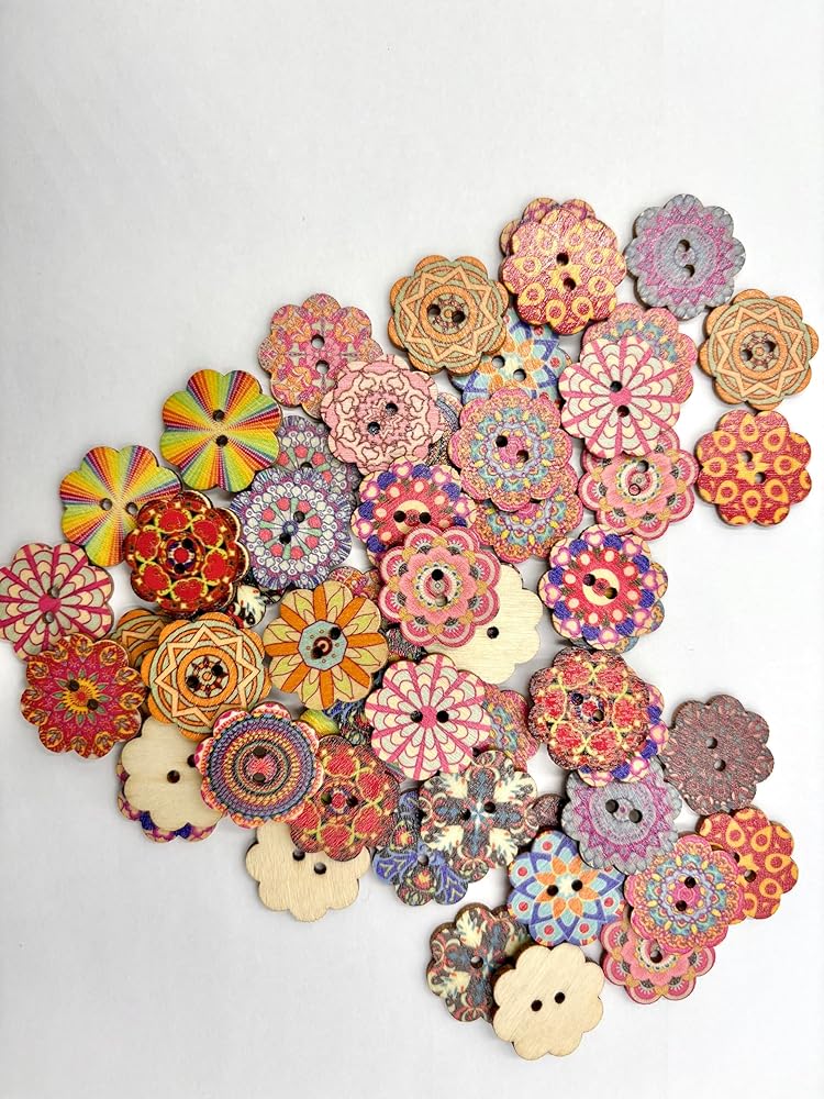 Unleash your creativity with these 100 mixed pattern vintage wooden buttons! Measuring 1 inch (25mm) in diameter with 2 holes, these hand-painted buttons add a touch of rustic charm to any DIY craft or sewing project. From floral motifs to geometric designs, each button is a unique work of art. Ideal for embellishing clothing, accessories, home decor, and more, these versatile buttons allow you to personalize your creations. With their random assortment of patterns, you'll receive a delightful surprise with every button. Crafted from high-quality wood, these buttons are durable and long-lasting. Elevate your handmade items with these eye-catching vintage wooden buttons.