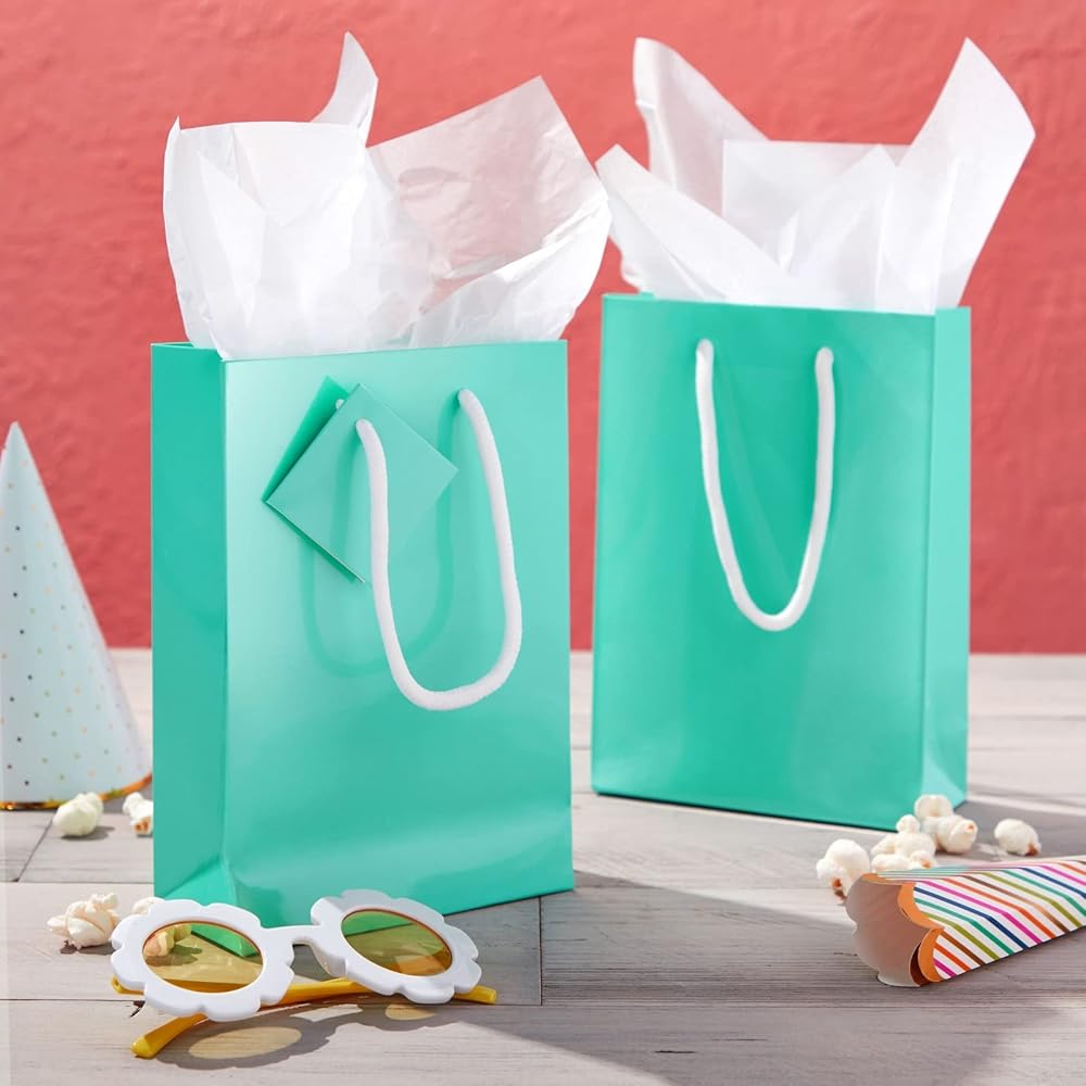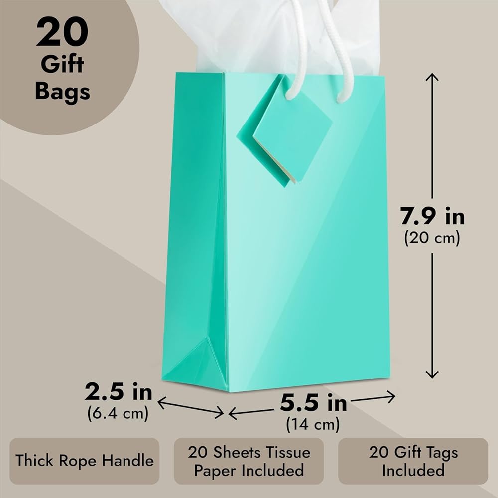 Package Contents: You will receive a total of 20 teal gift bags with handles and 20 white sheets of tissue paper, ensuring you have more than enough for multiple gift-giving occasions