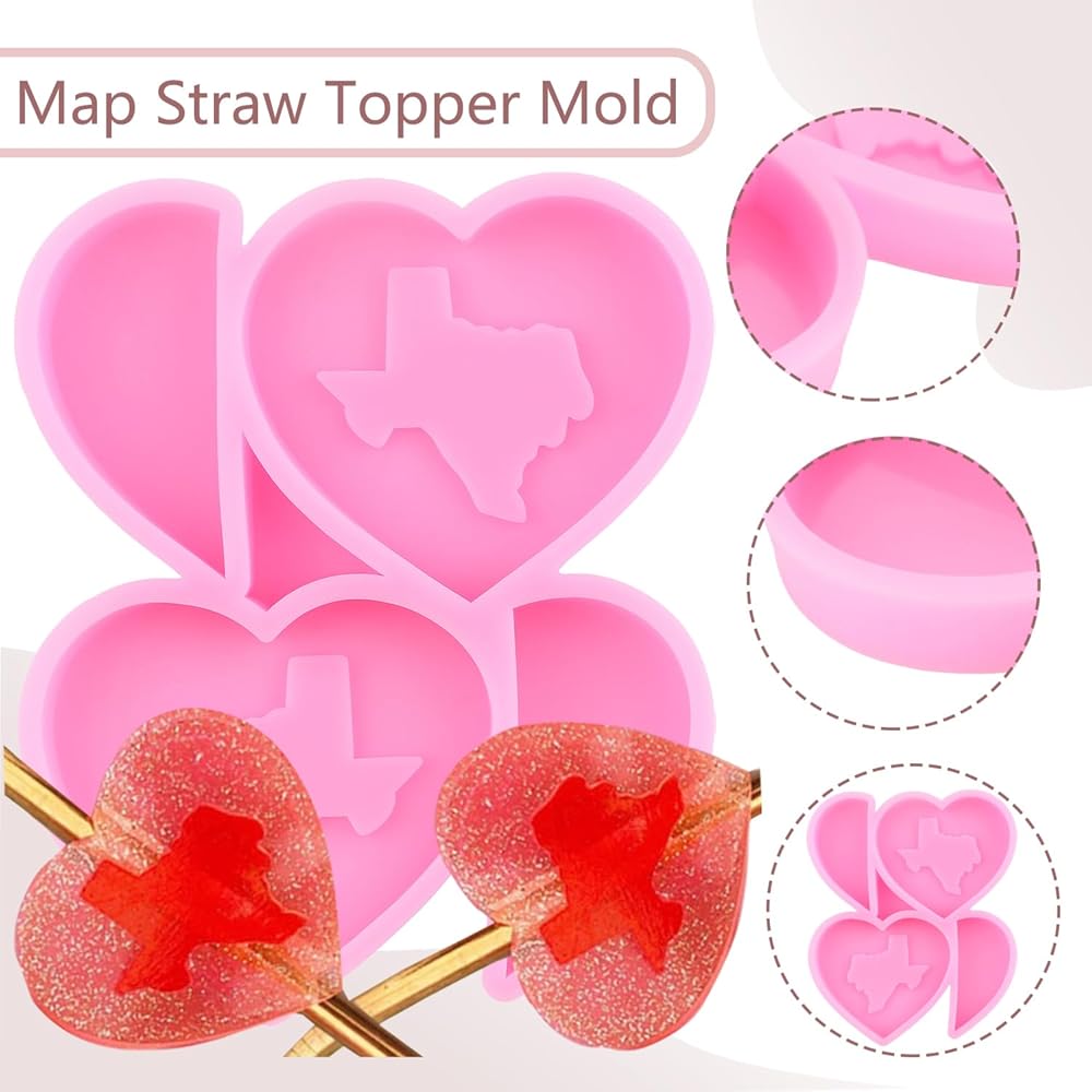 1Pcs Texas Map Straw Topper Silicone Resin Molds Kit Size