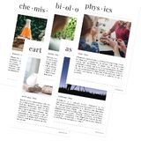 5 ملصقات: 1) الكيمياء ، 2) علم الأحياء ، 3) الفيزياء ، 4) علوم الأرض ، و 5) علم الفلك.