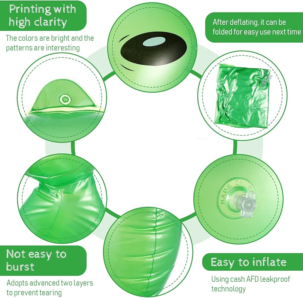 Easy to use: inflatable alien has double-layer suture, which is tight and can effectively prevent bursting and tearing; And the inflation port adopts leak-proof technology, which is convenient for inflation; When you idle it, you can deflate the balloon and fold it for next use